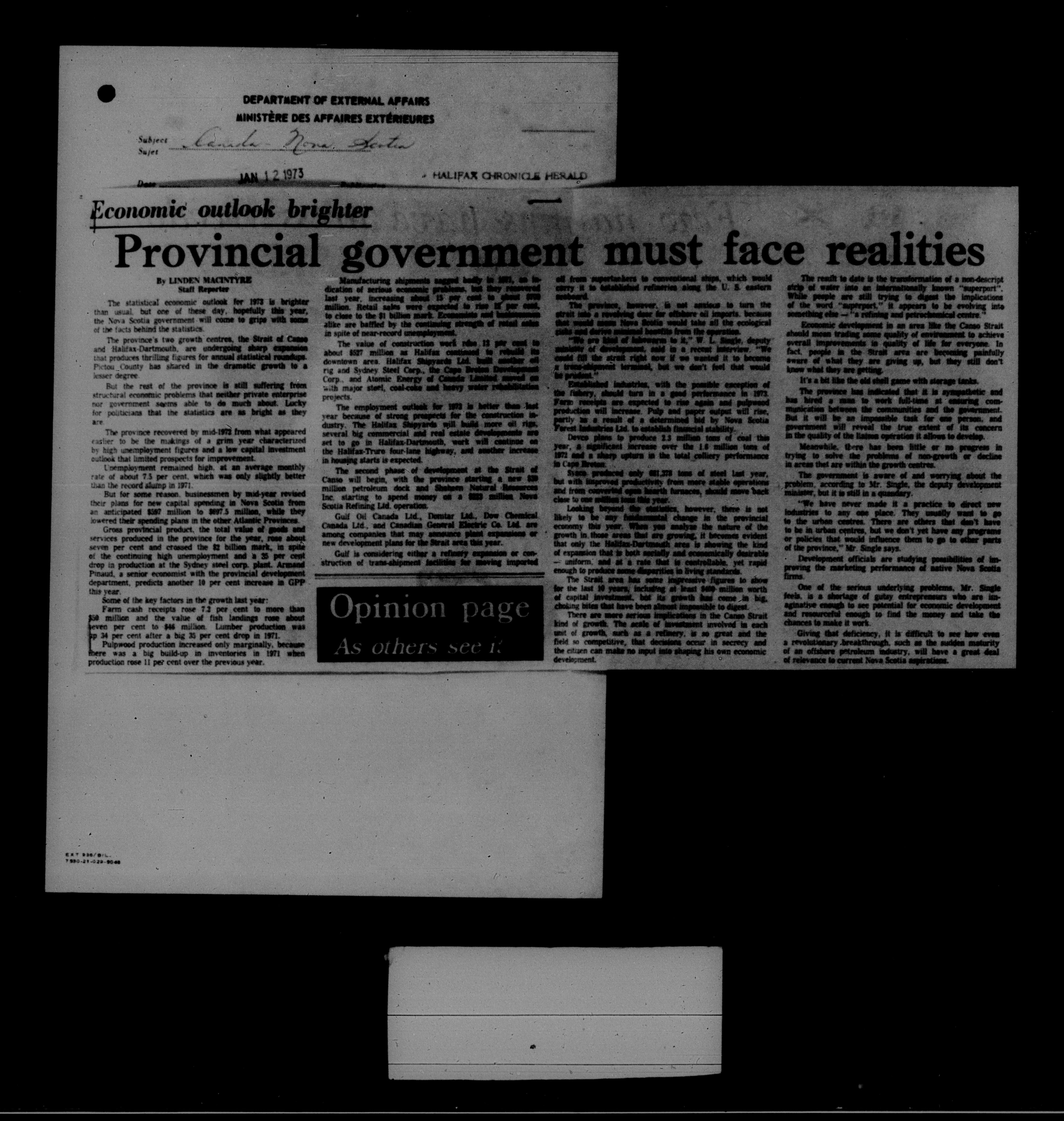 Department of External Affairs Library : newspaper clippings and manuals - 7790