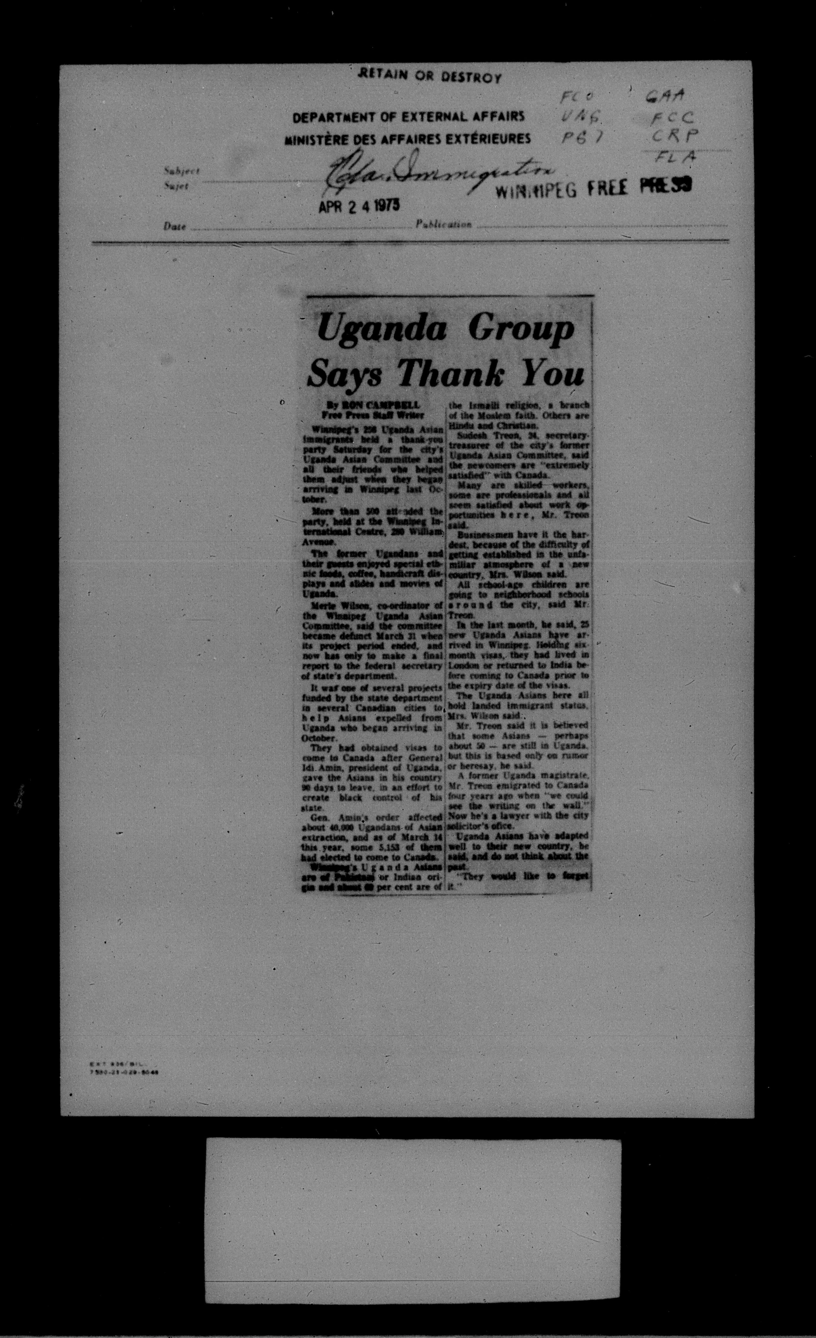 Department of External Affairs Library : newspaper clippings and manuals - 7790