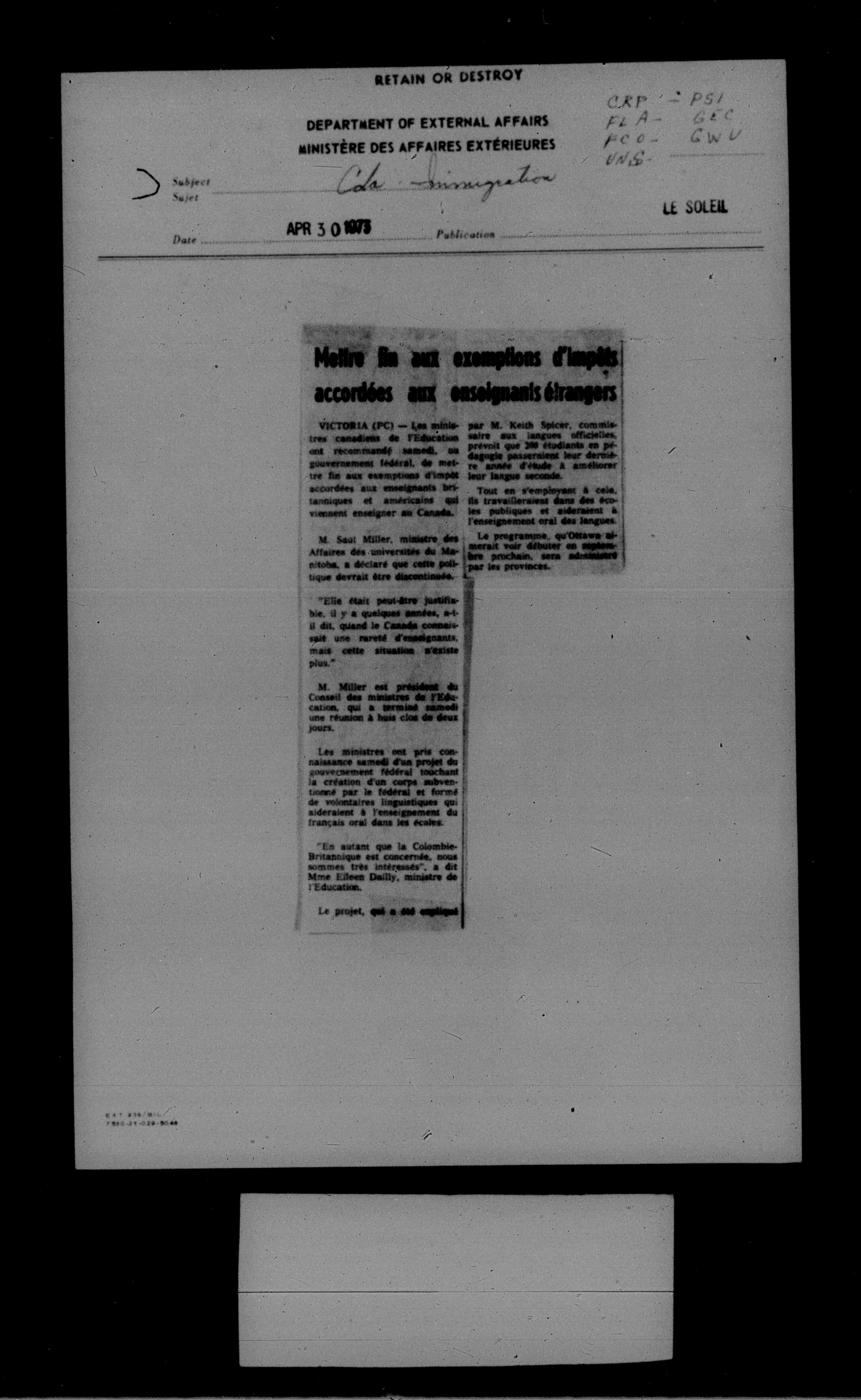 Department of External Affairs Library : newspaper clippings and manuals - 7790