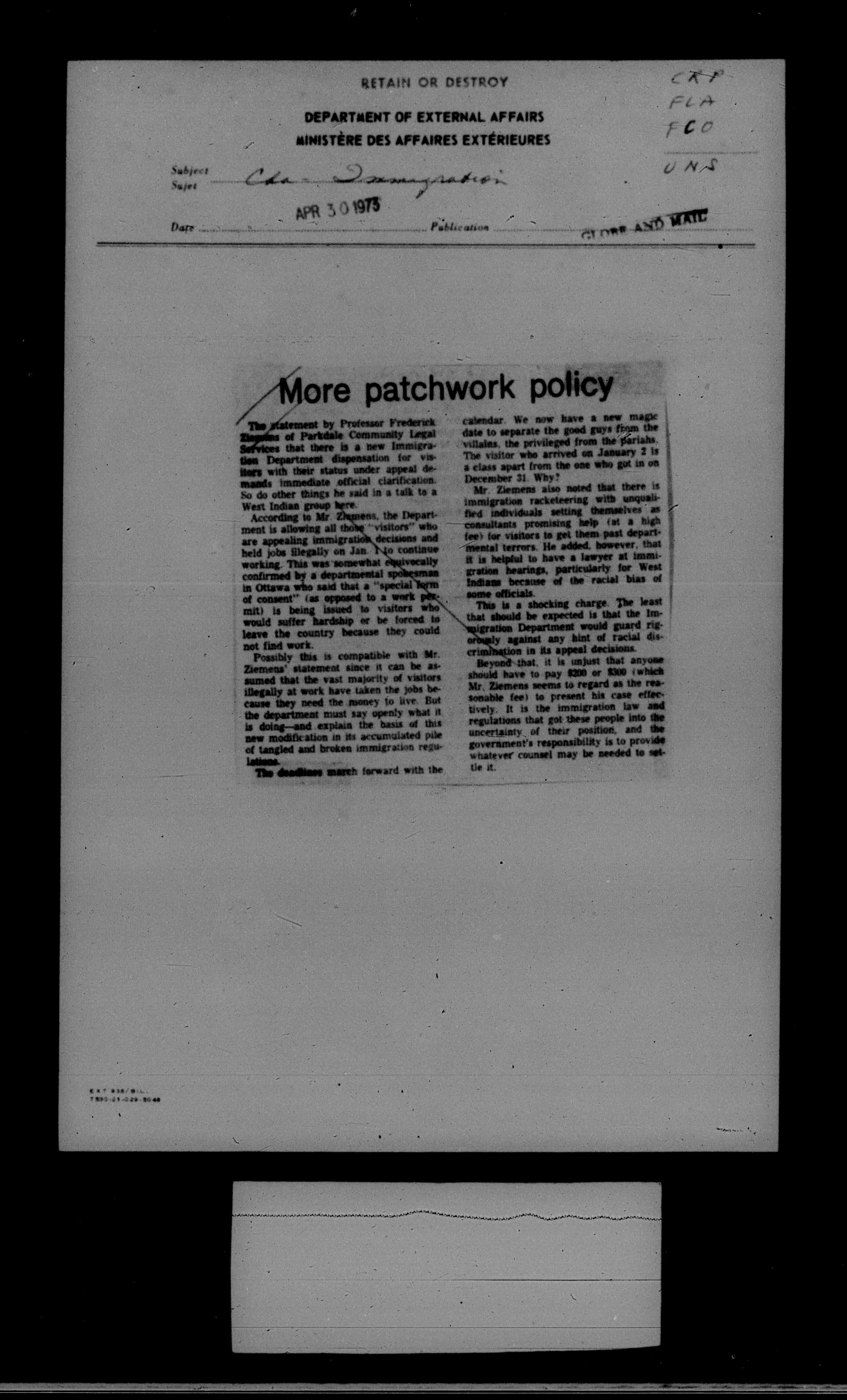 Department of External Affairs Library : newspaper clippings and manuals : C-7790