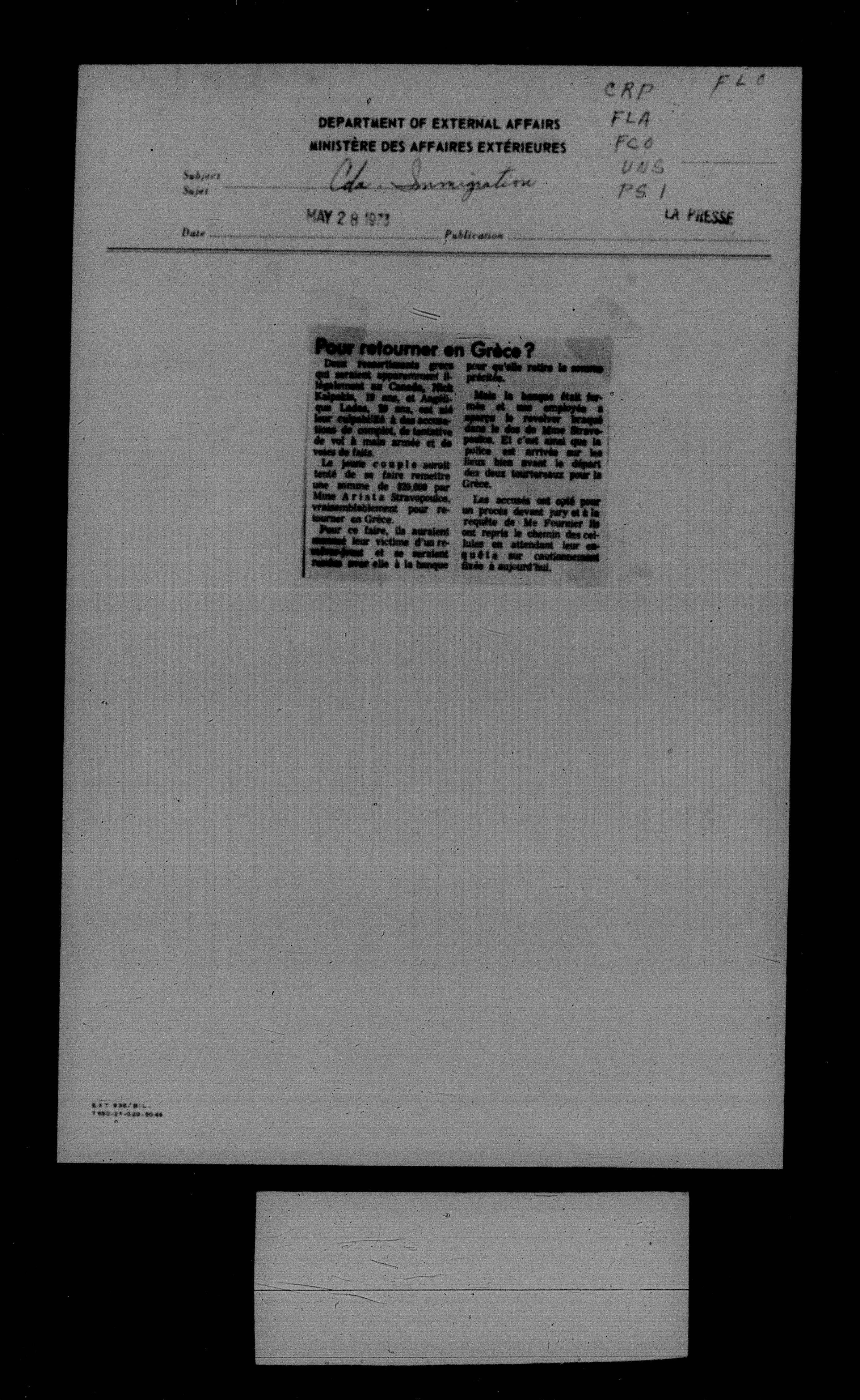Department of External Affairs Library : newspaper clippings and manuals - 7790
