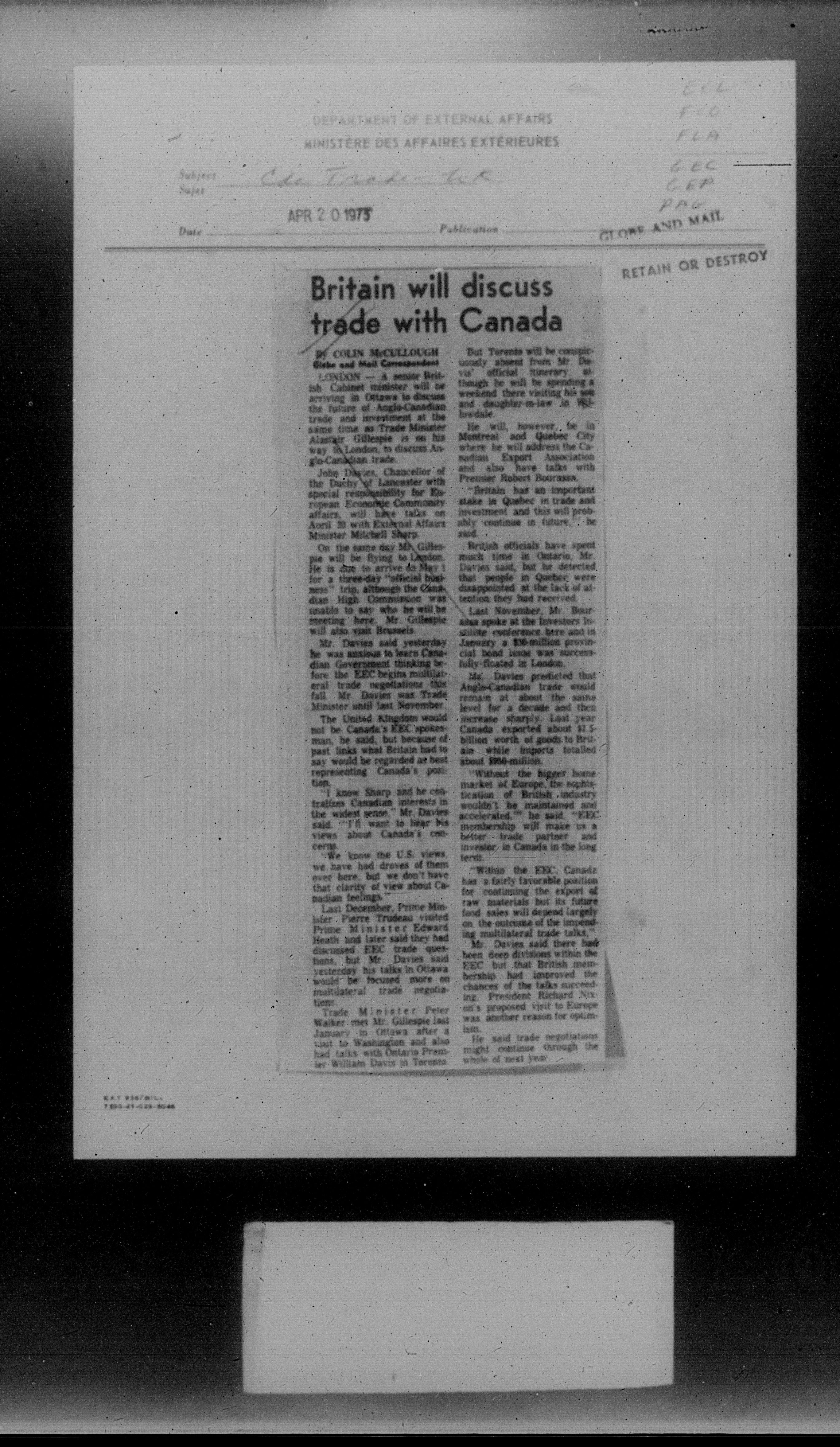 Department of External Affairs Library : newspaper clippings and manuals - 7792