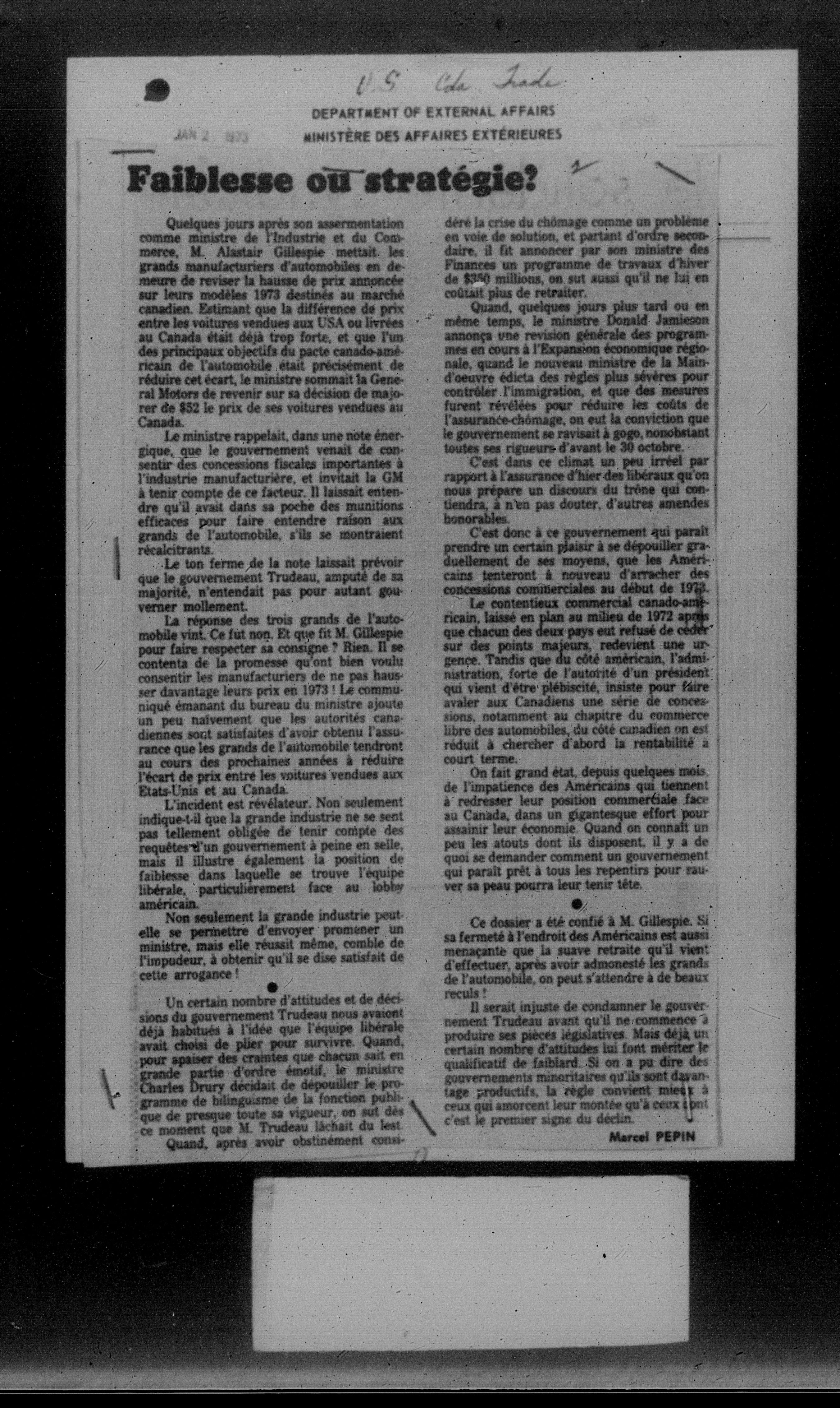 Department of External Affairs Library : newspaper clippings and manuals - 7792