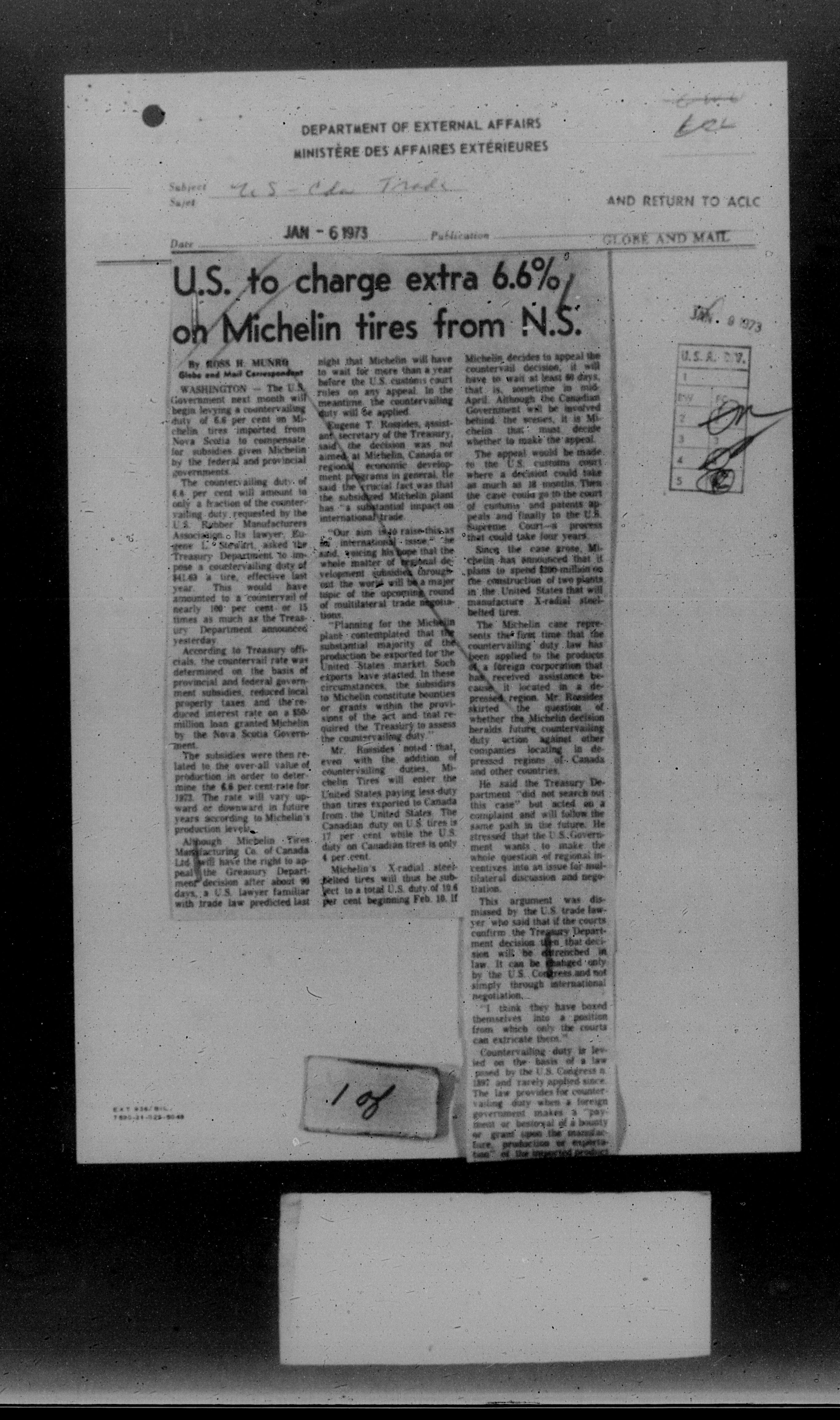 Department of External Affairs Library : newspaper clippings and manuals - 7792
