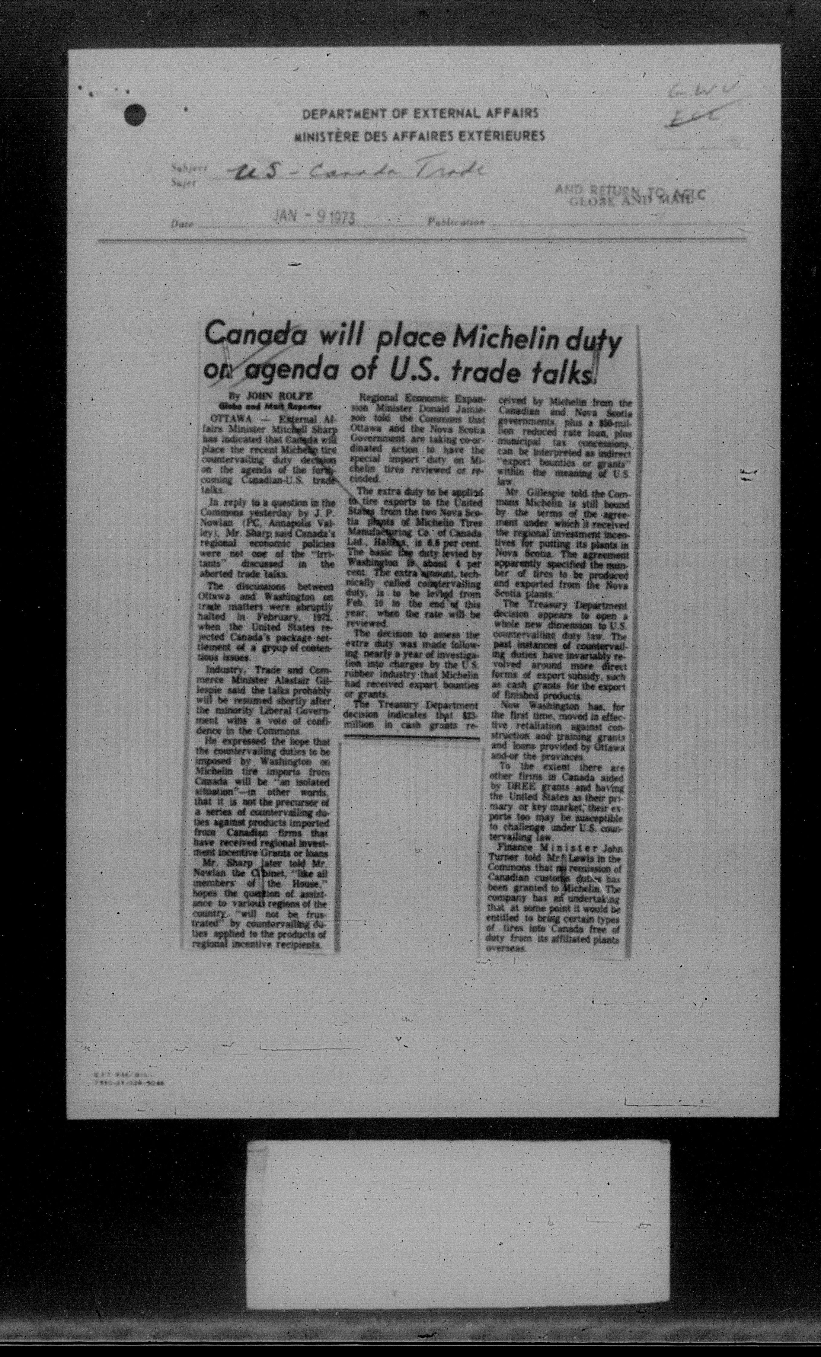 Department of External Affairs Library : newspaper clippings and manuals - 7792