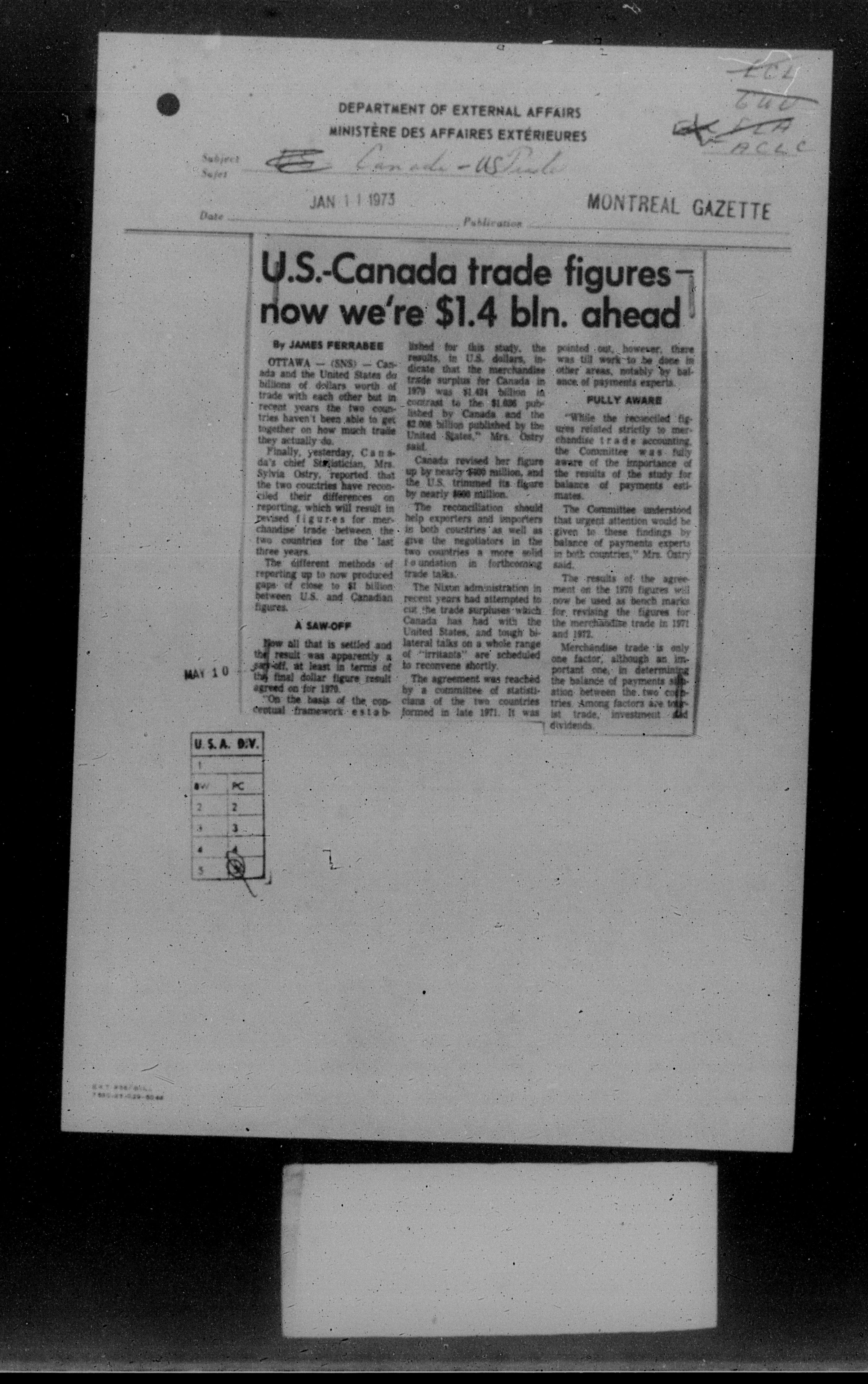Department of External Affairs Library : newspaper clippings and manuals - 7792