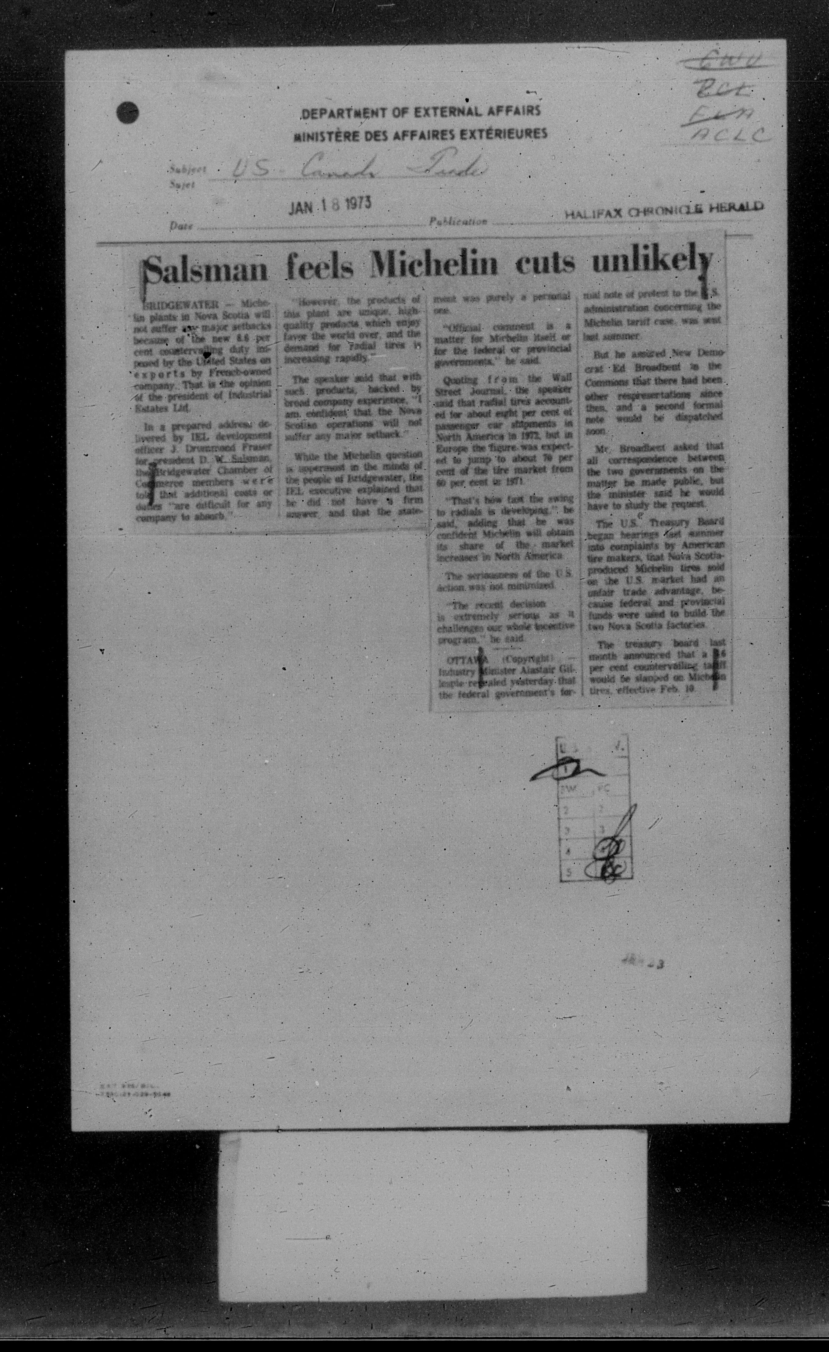 Department of External Affairs Library : newspaper clippings and manuals - 7792