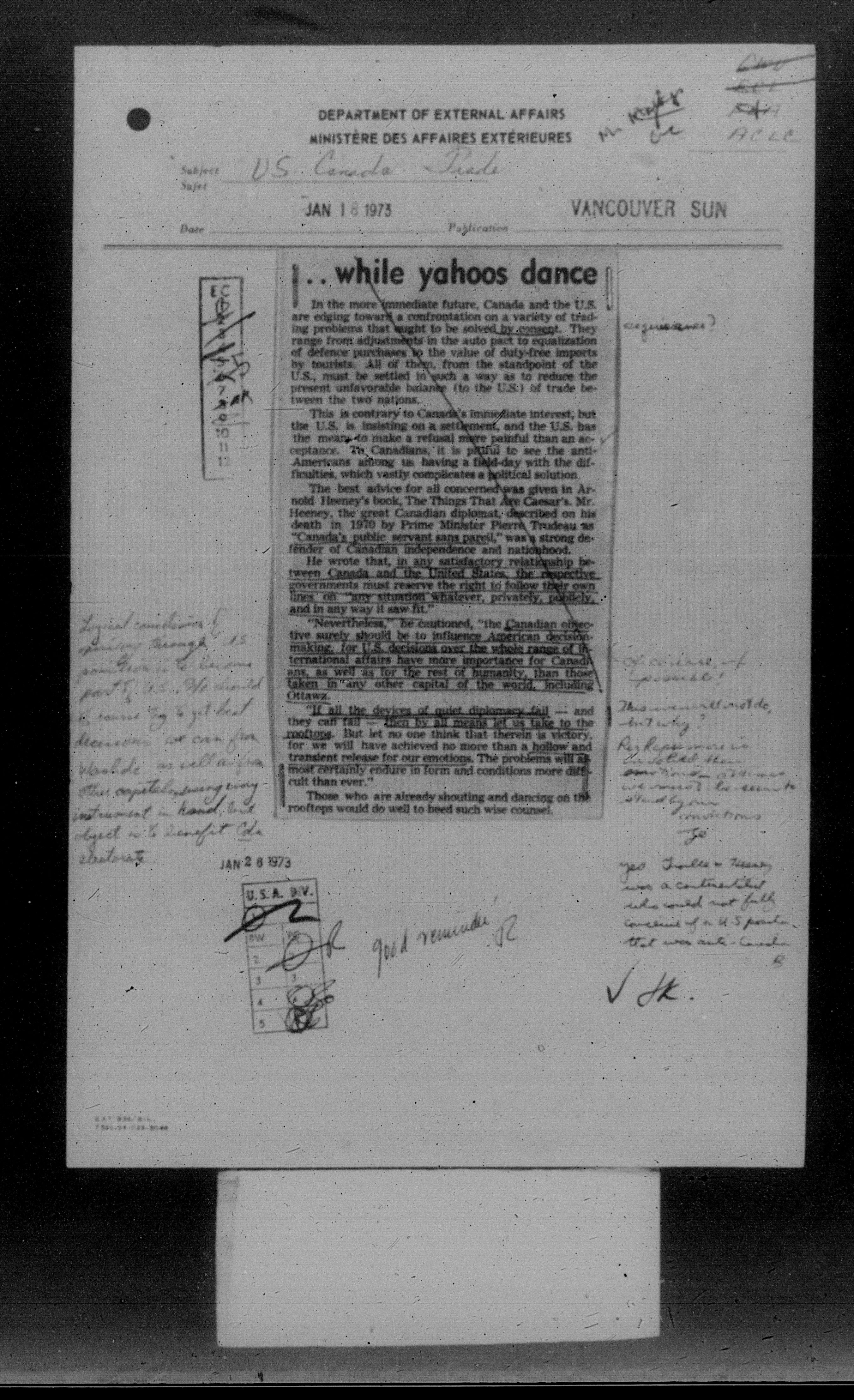 Department of External Affairs Library : newspaper clippings and manuals - 7792