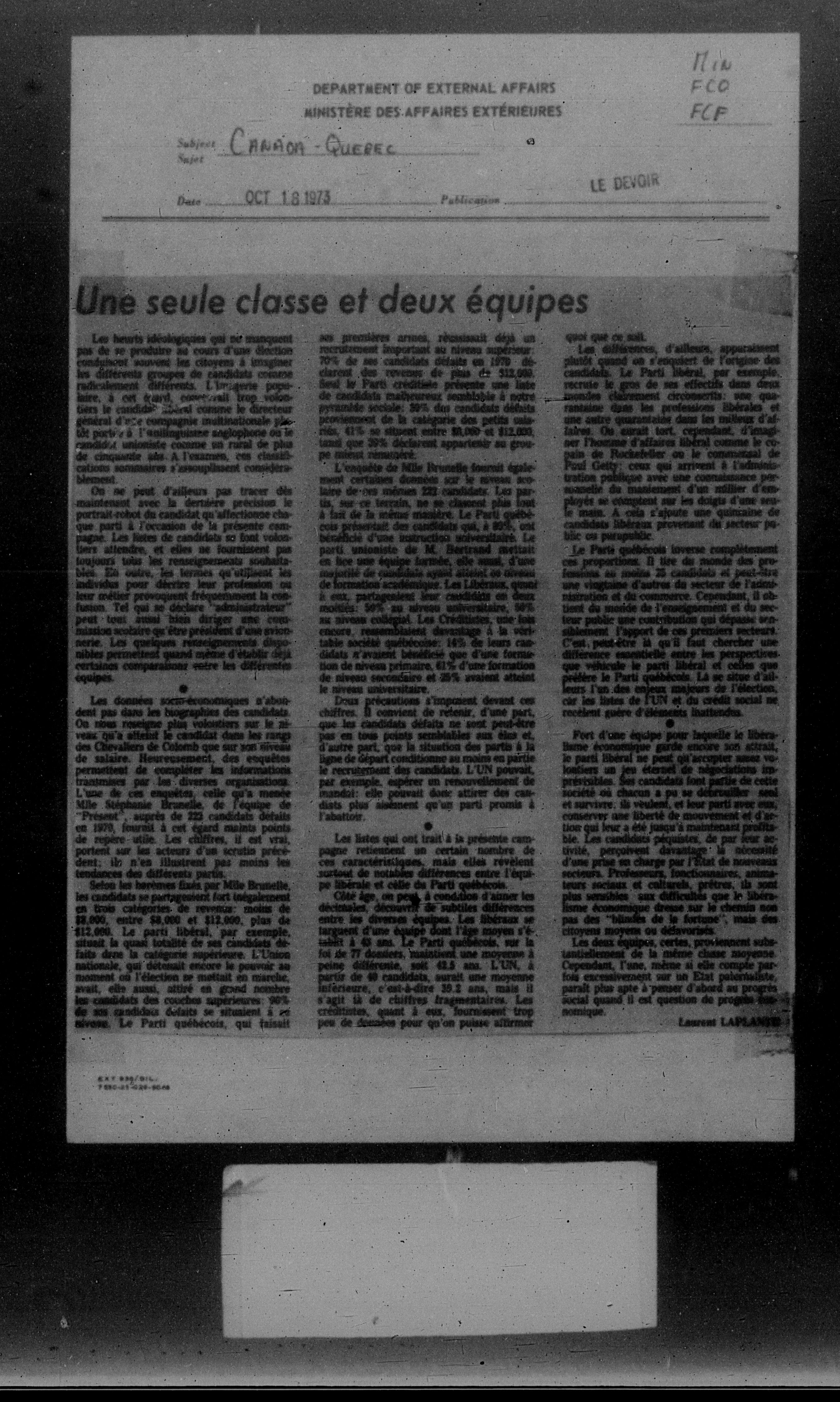 Department of External Affairs Library : newspaper clippings and manuals : C-7792