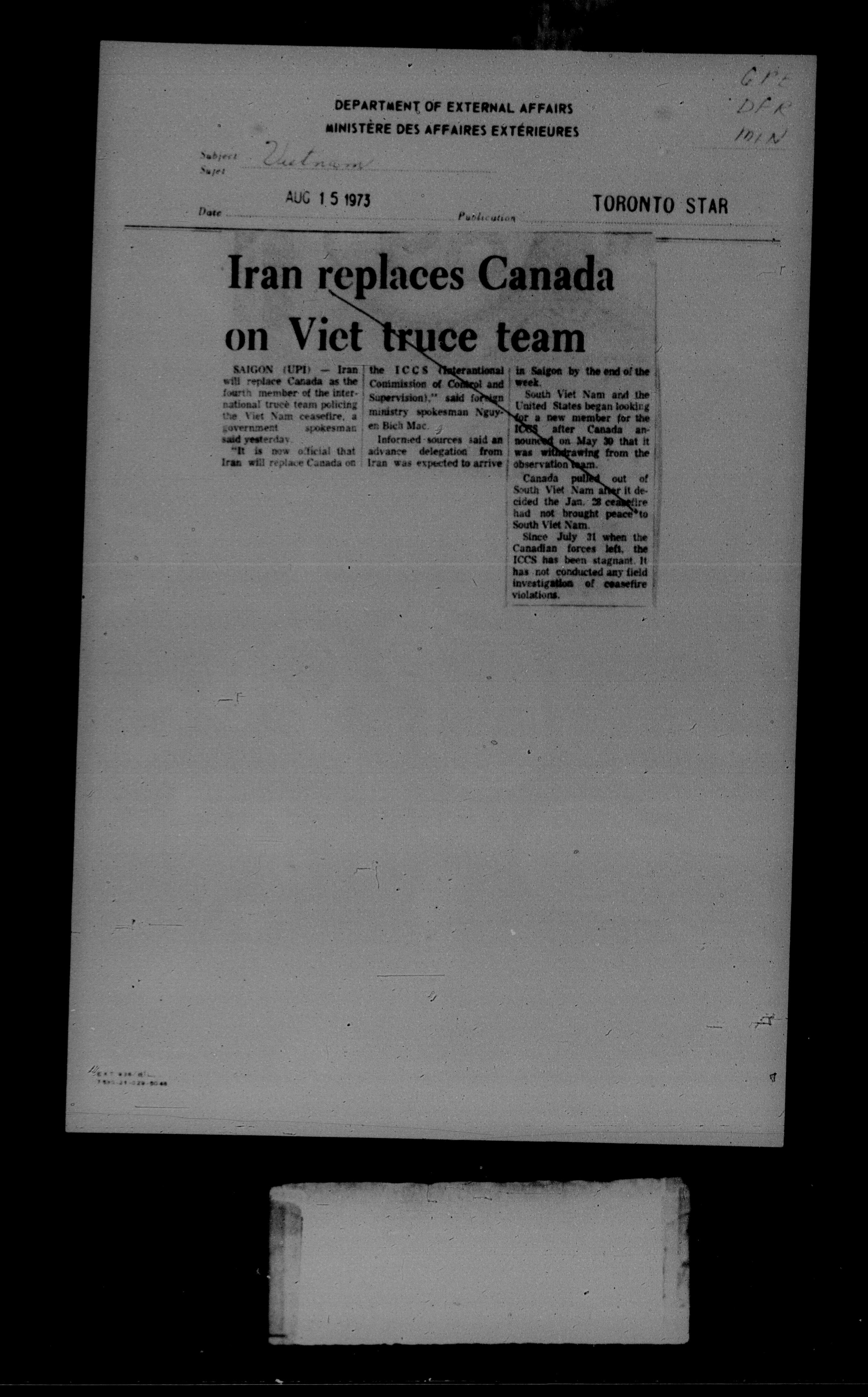 Department of External Affairs Library : newspaper clippings and manuals : C-7793