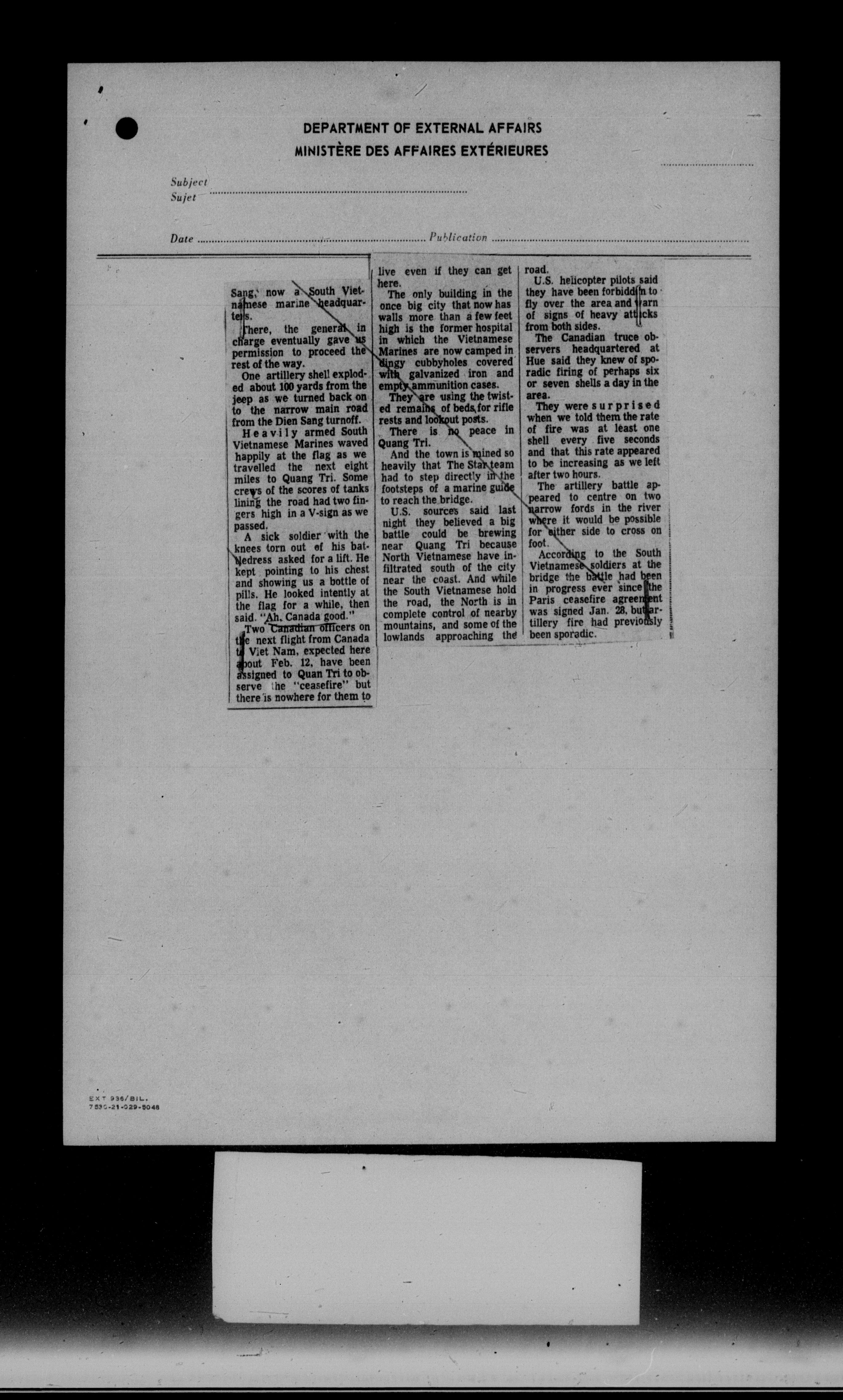 Department of External Affairs Library : newspaper clippings and manuals : C-7794