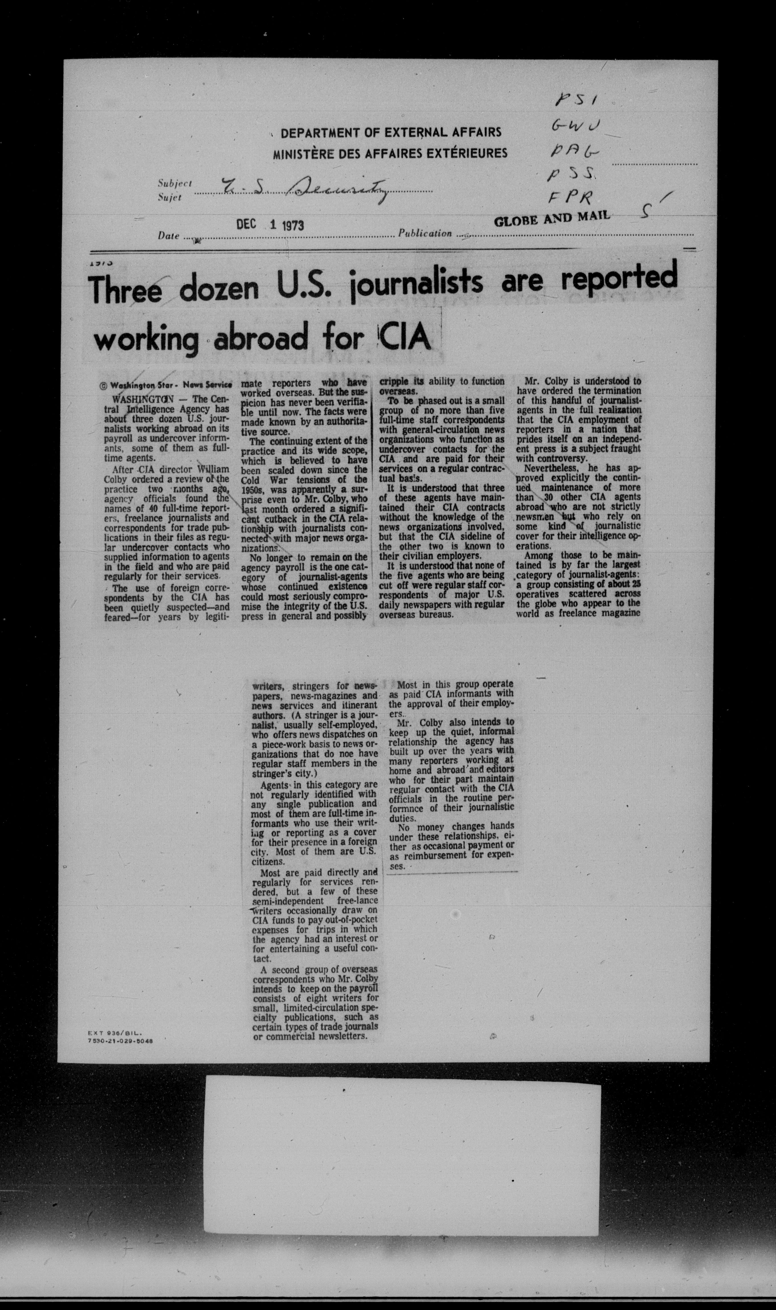 Department of External Affairs Library : newspaper clippings and manuals - 7794