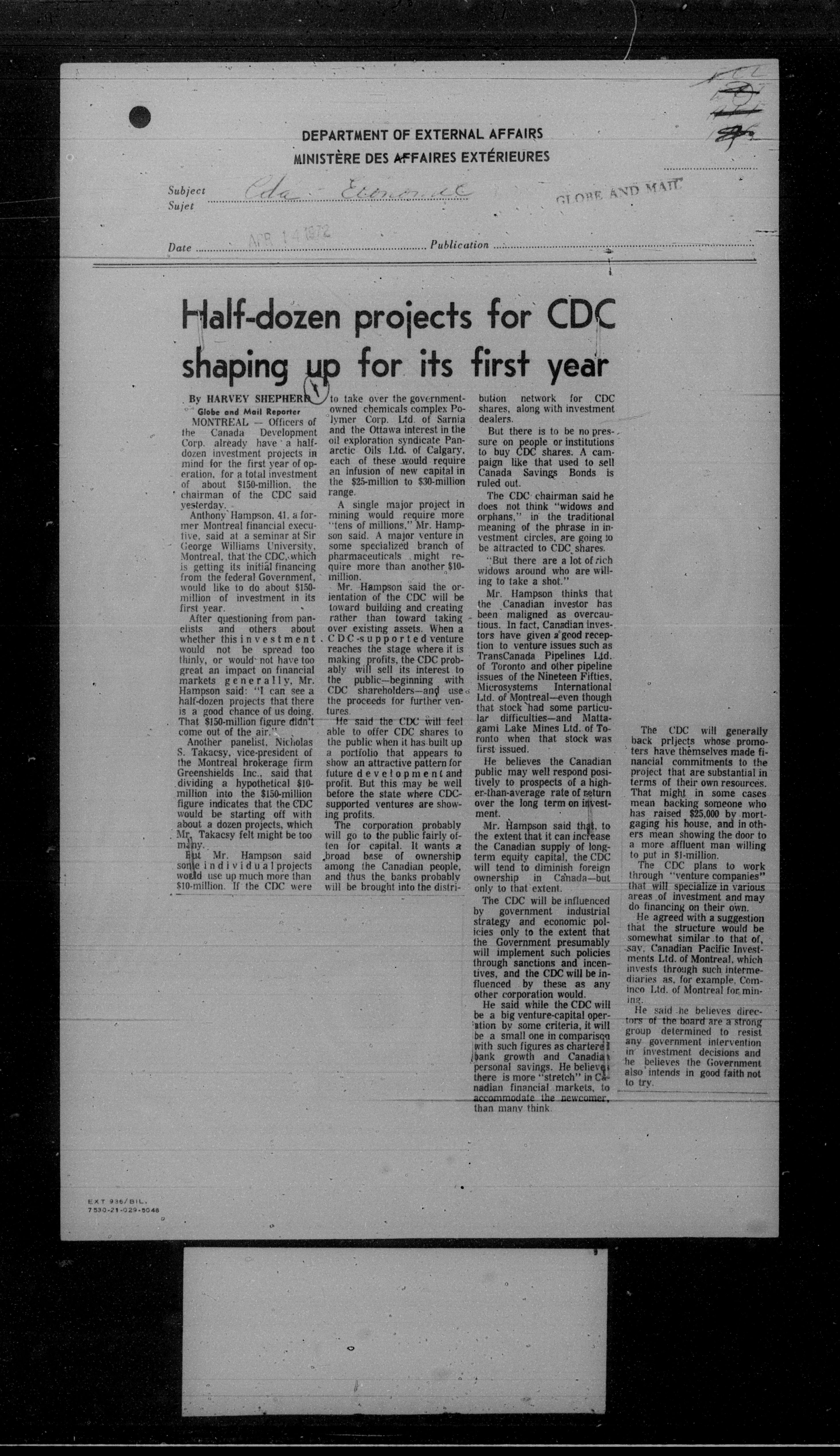 Department of External Affairs Library : newspaper clippings and manuals - 7796