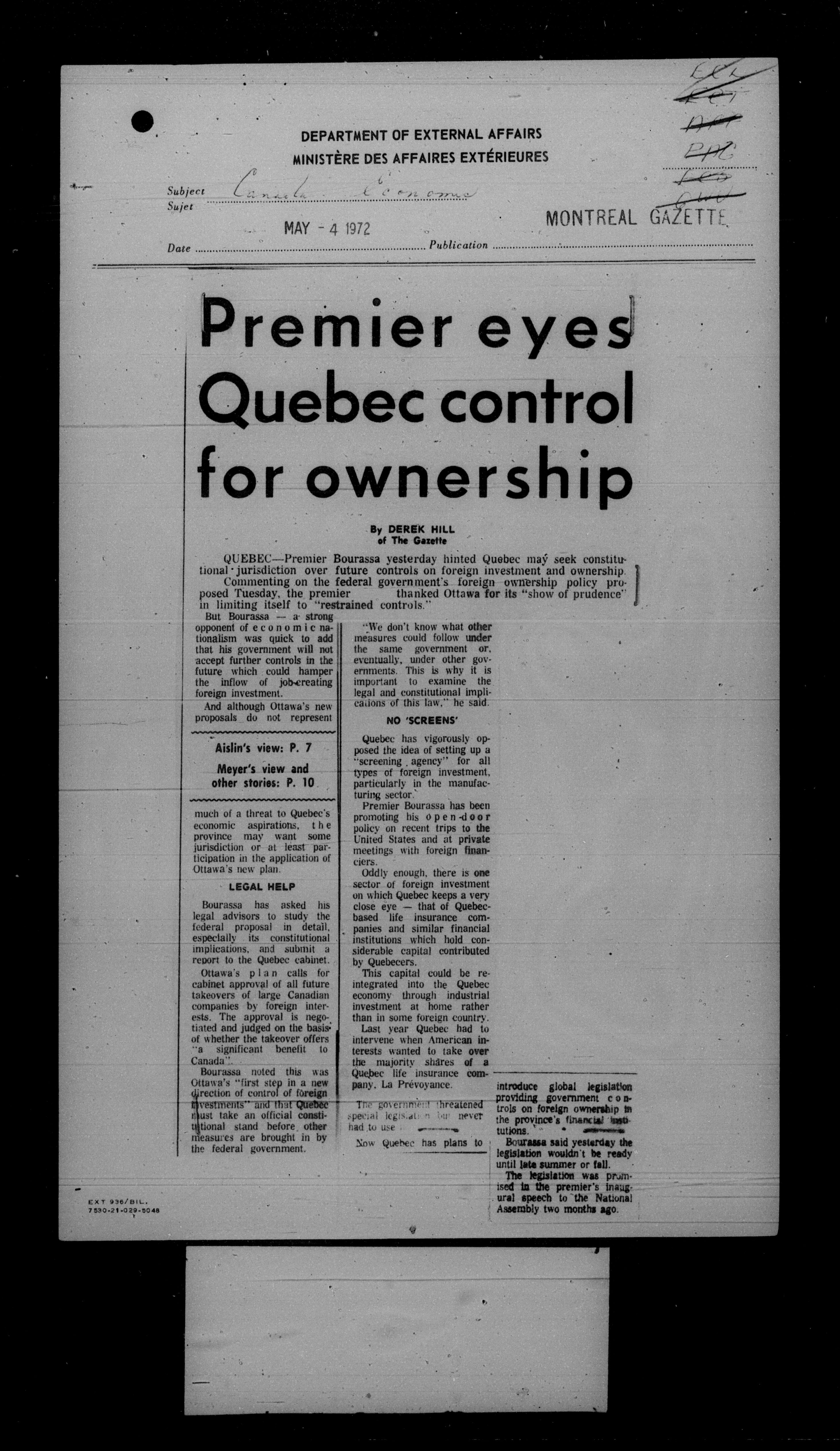 Department of External Affairs Library : newspaper clippings and manuals : C-7796