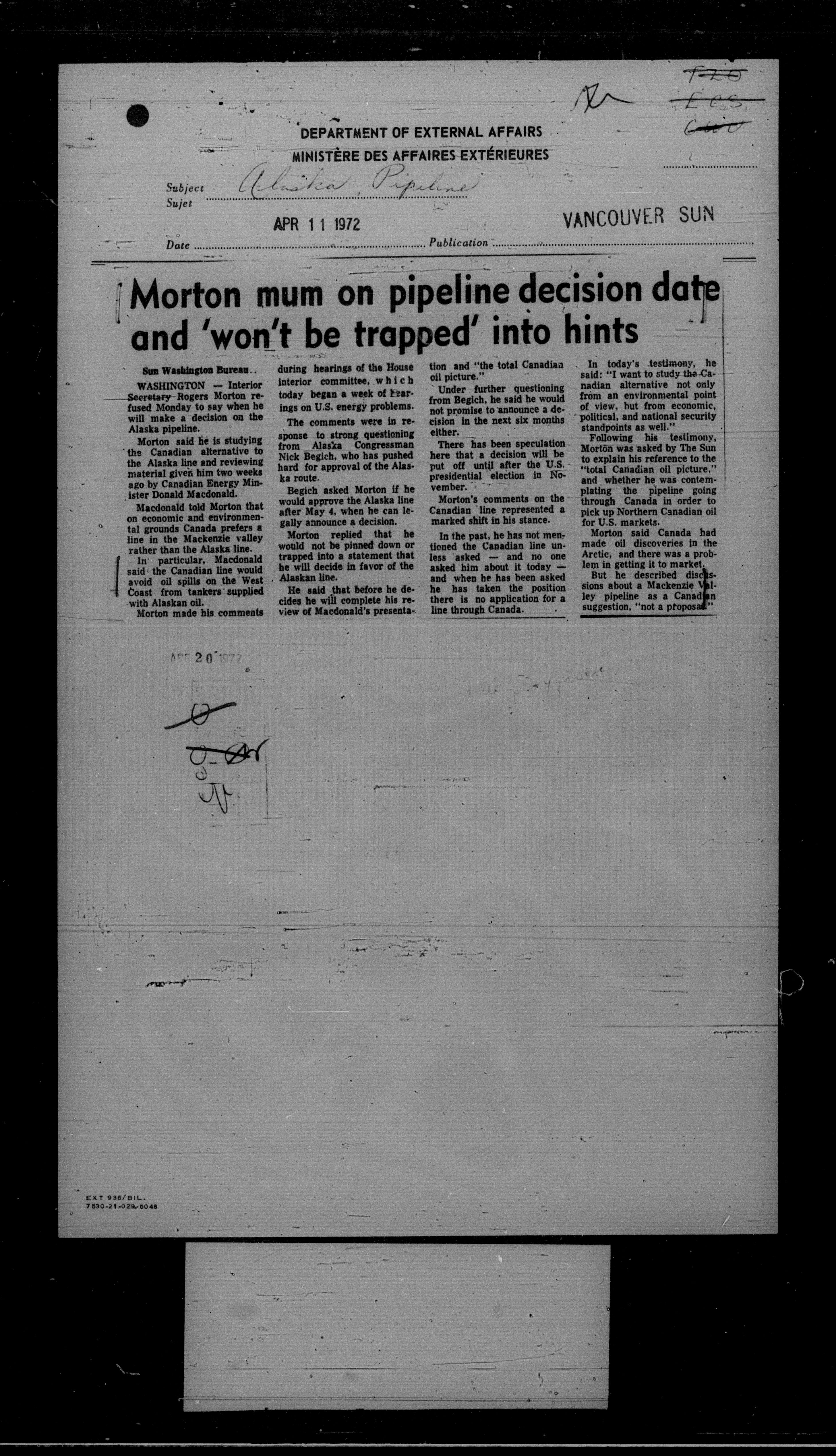 Department of External Affairs Library : newspaper clippings and manuals : C-7796