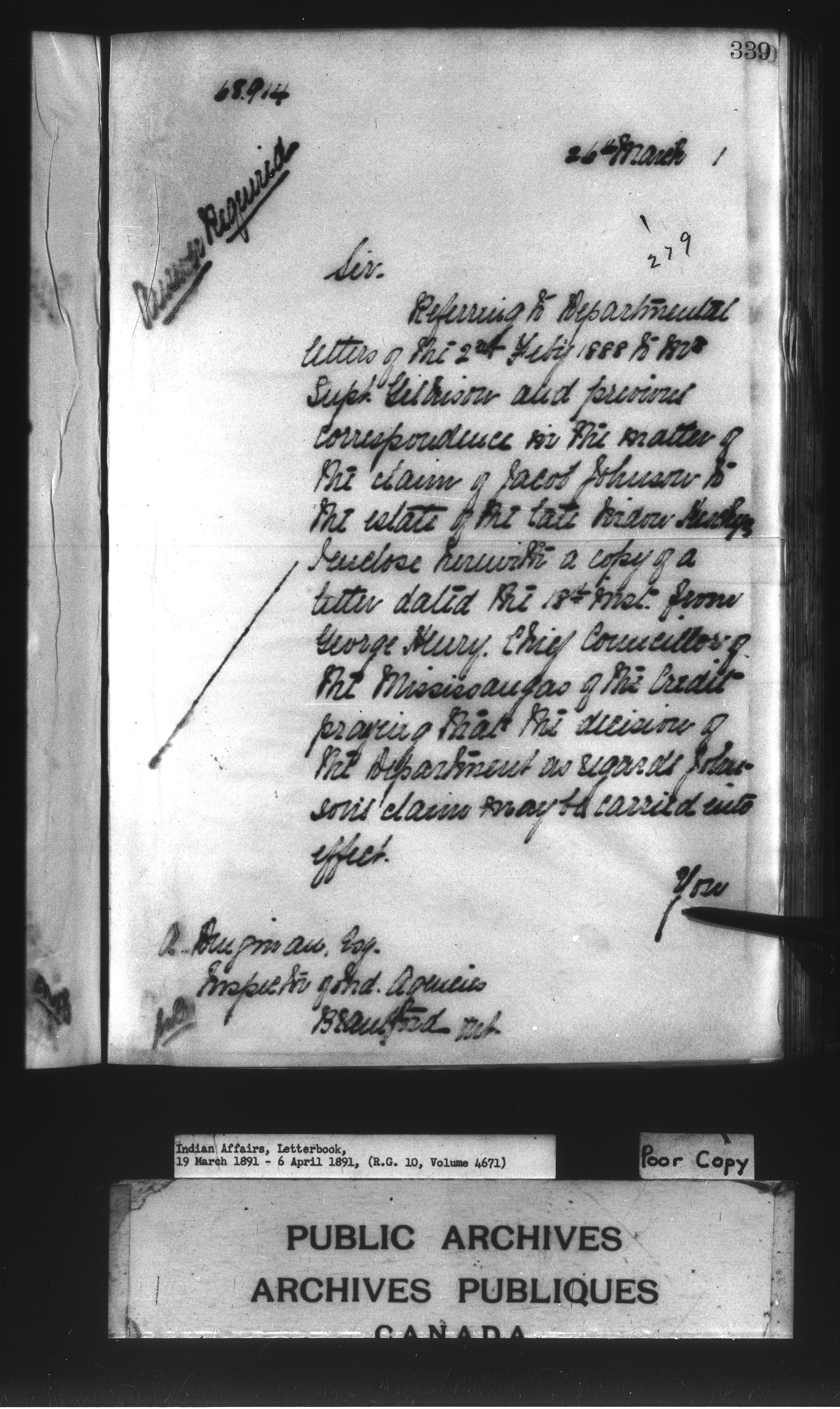 Department of Indian Affairs : Departmental letterbooks : C-7798