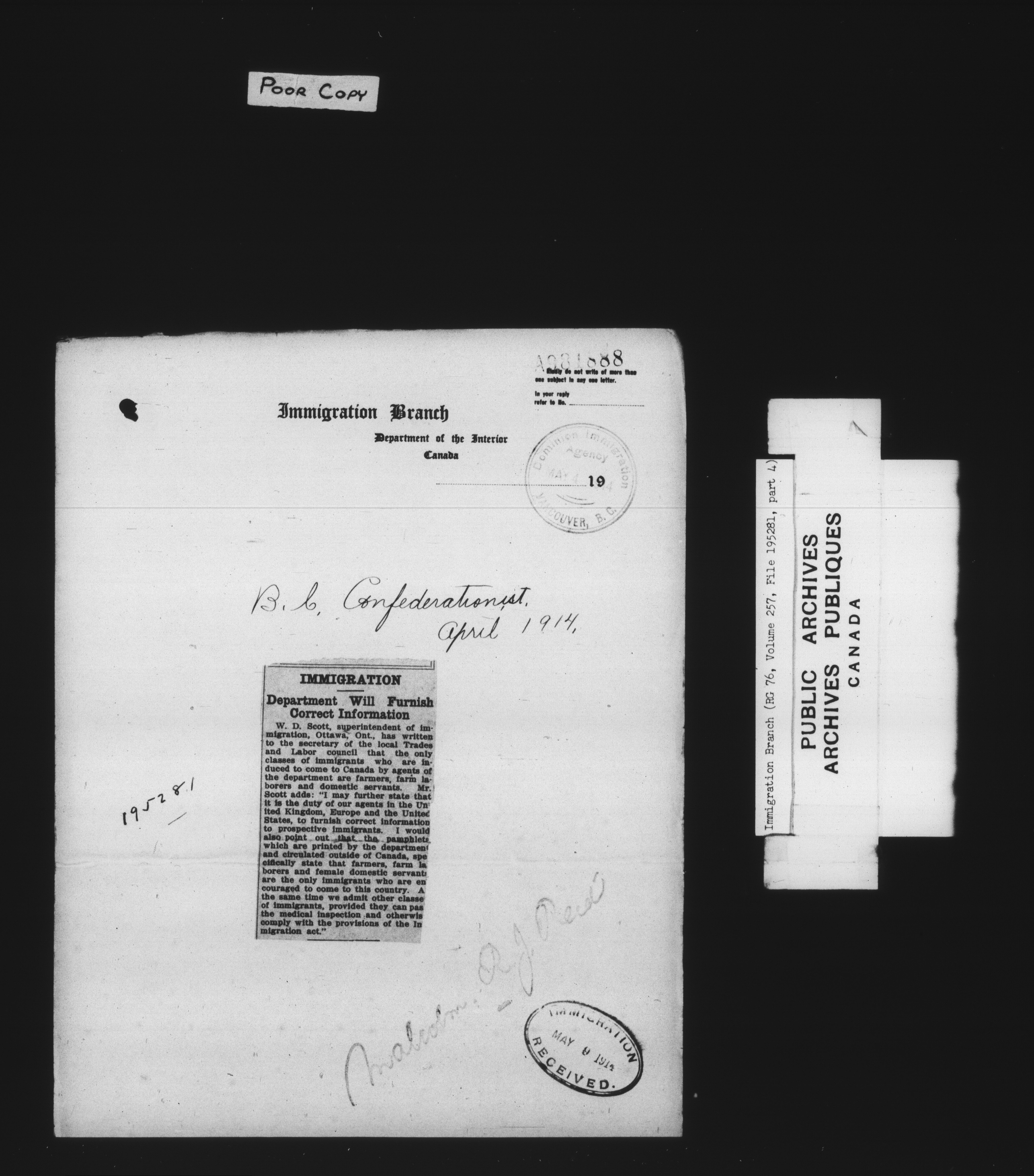 Subject, policy and case files in the First Central Registry series of the Immigration Program, 1892-1950 - 7805