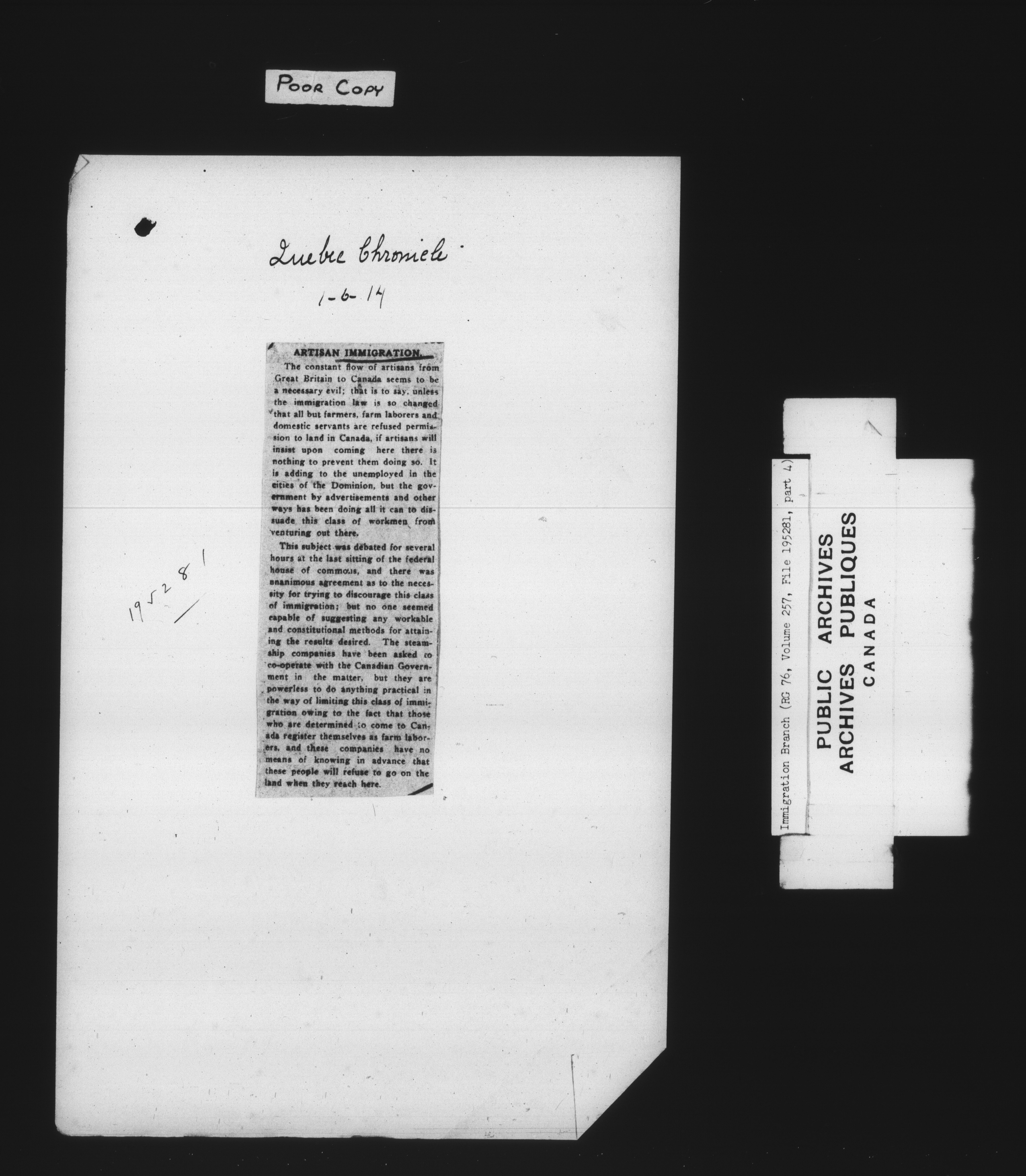 Subject, policy and case files in the First Central Registry series of the Immigration Program, 1892-1950 - 7805