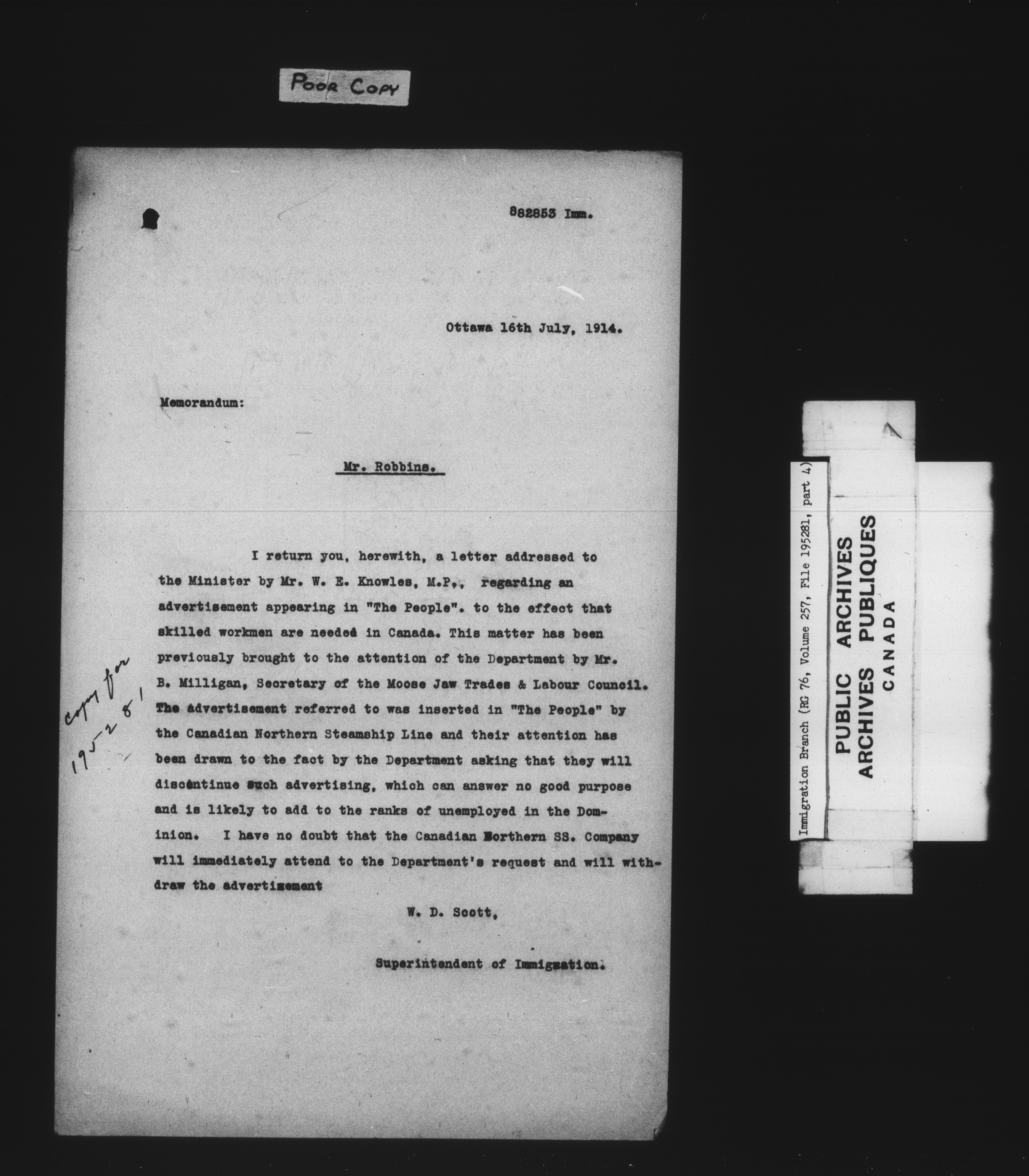 Subject, policy and case files in the First Central Registry series of the Immigration Program, 1892-1950 - 7805