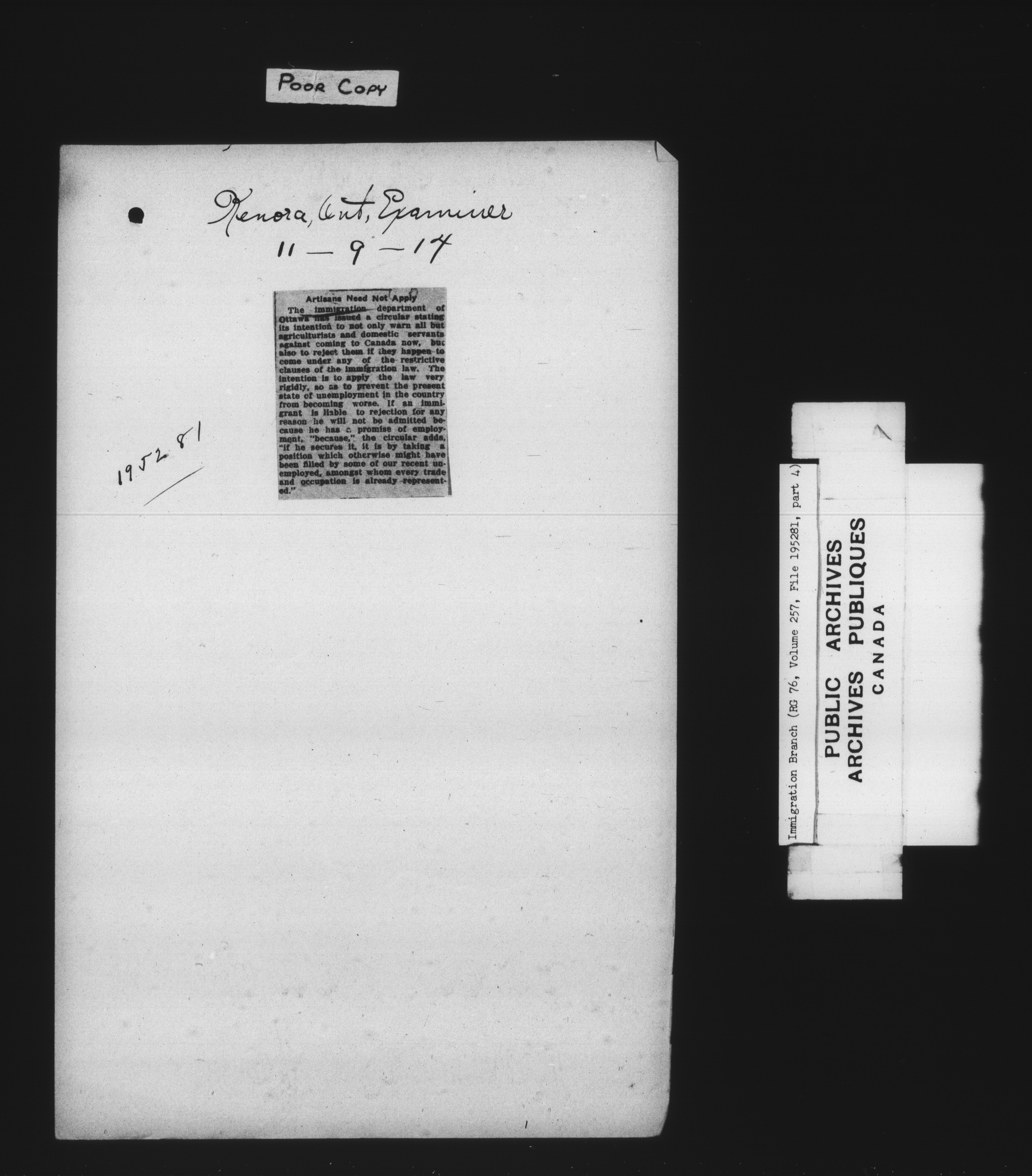 Subject, policy and case files in the First Central Registry series of the Immigration Program, 1892-1950 - 7805