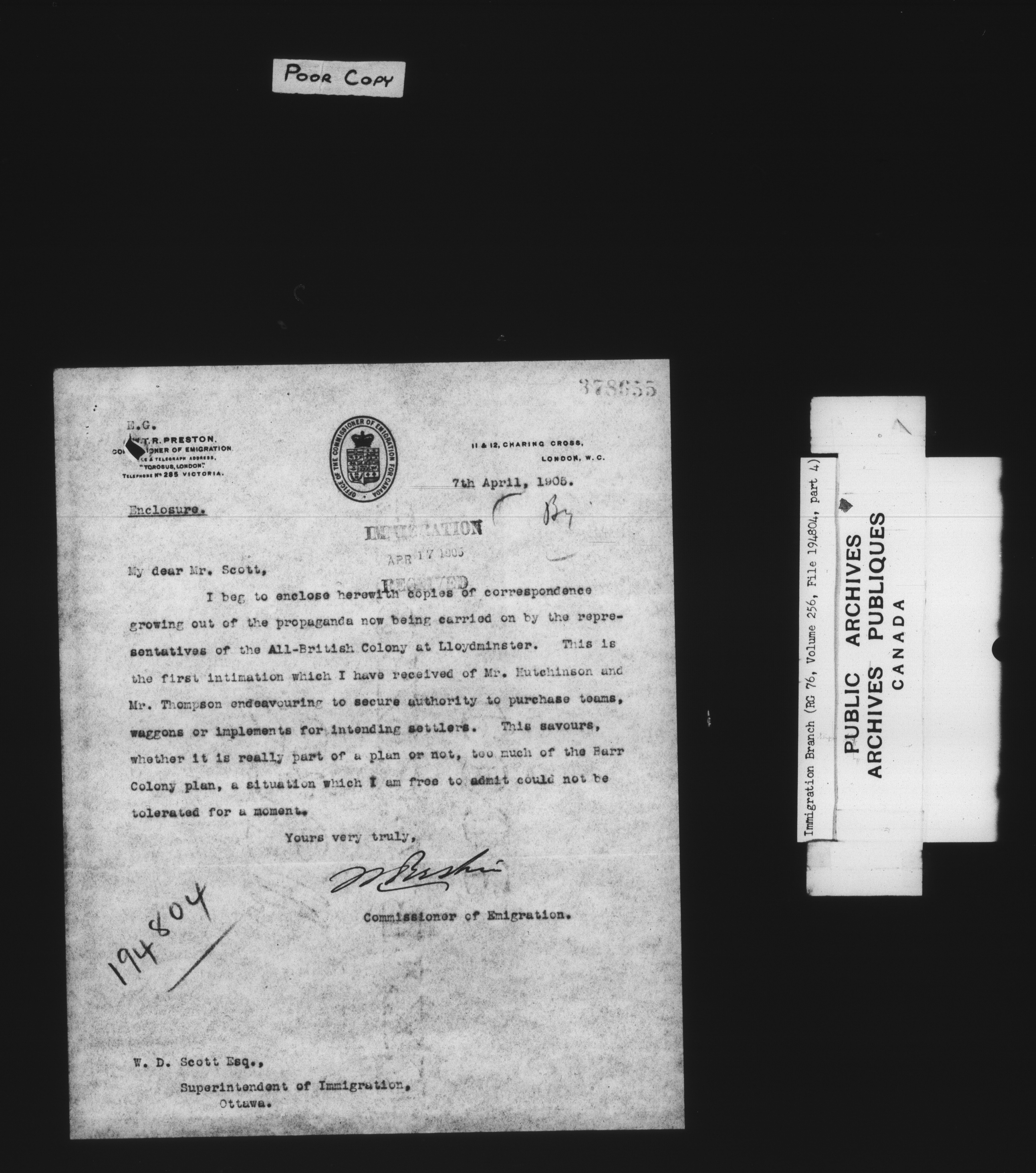 Subject, policy and case files in the First Central Registry series of the Immigration Program, 1892-1950 - 7805