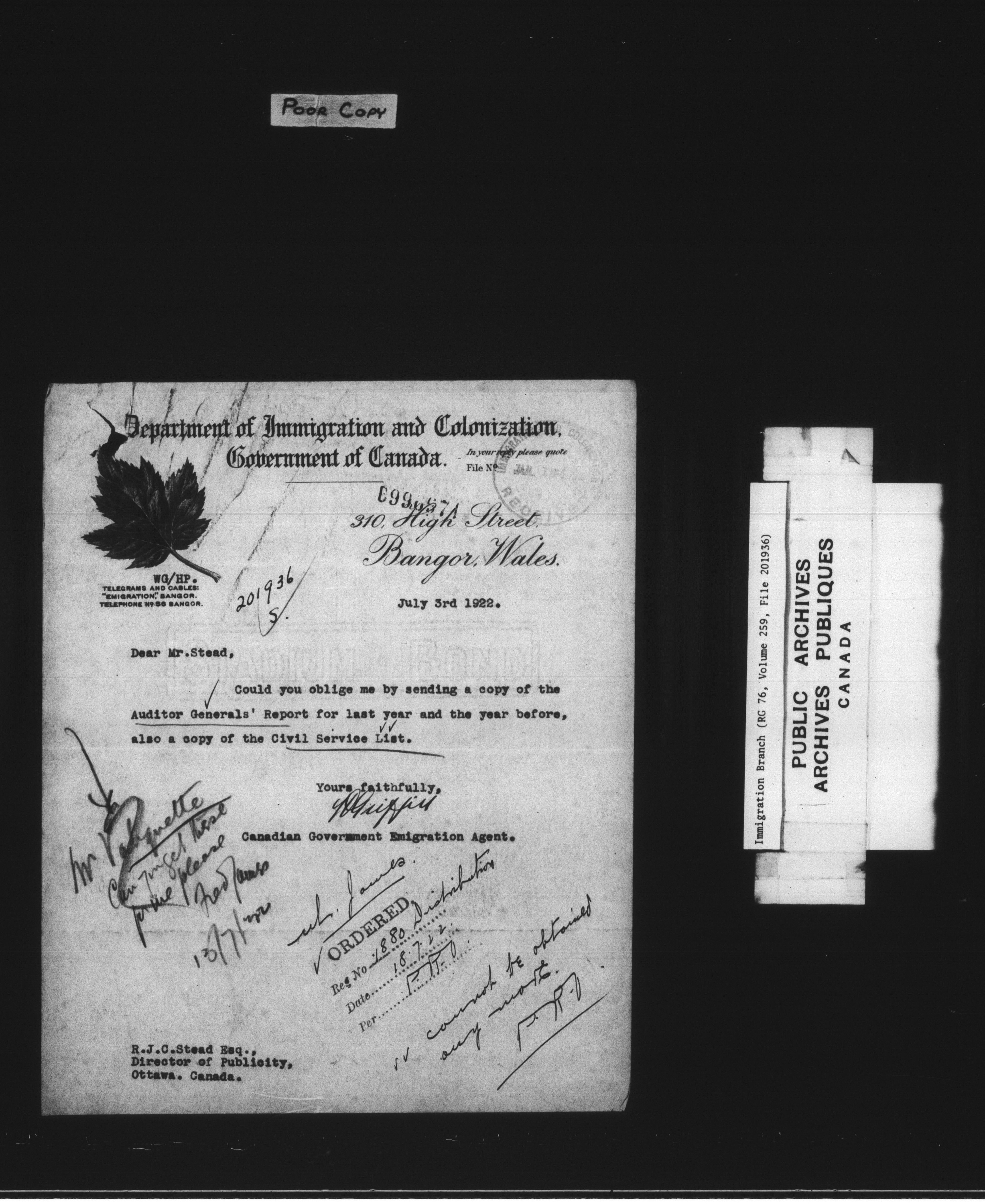 Immigration Program : Headquarters central registry files : C-7807