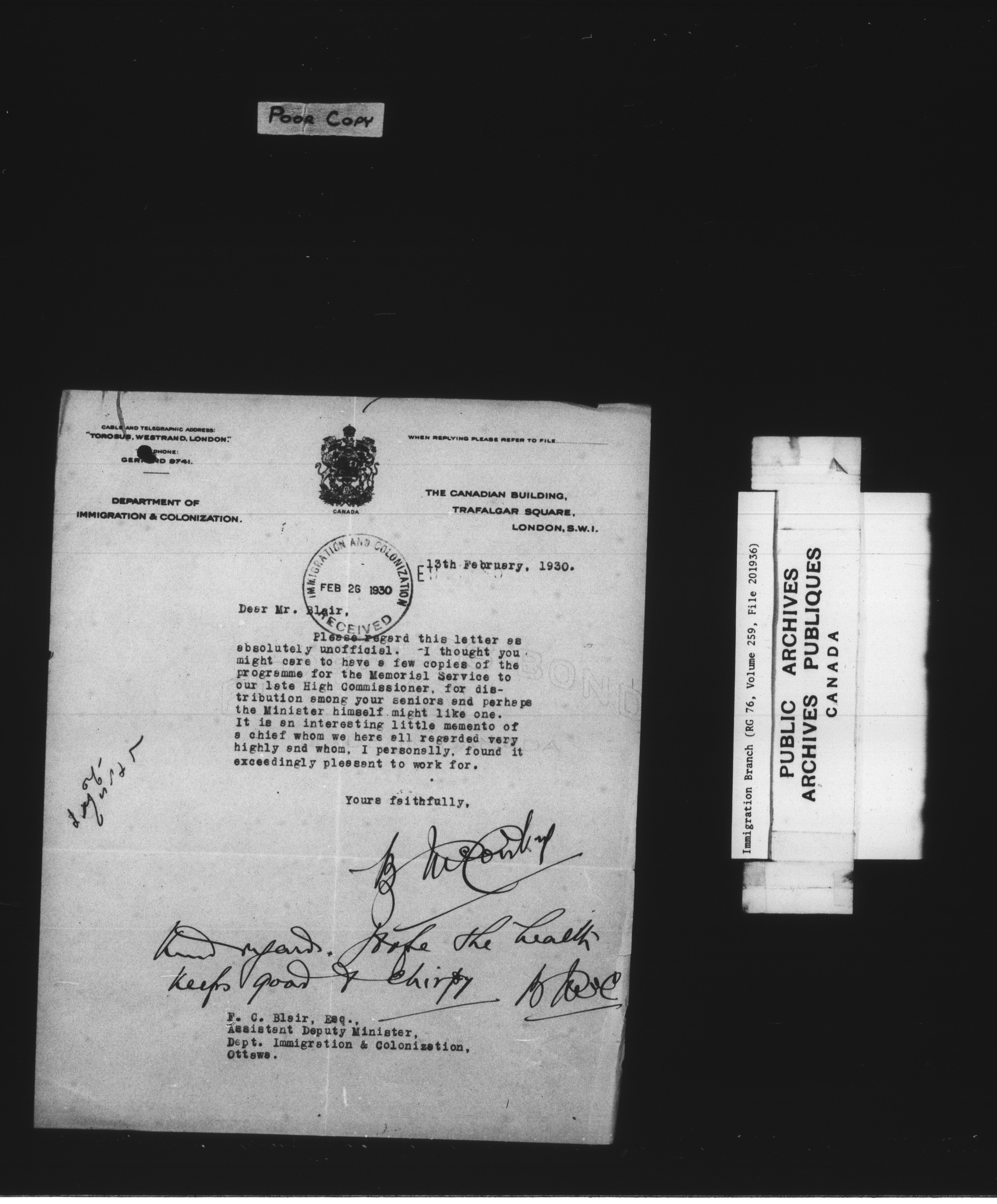 Immigration Program : Headquarters central registry files : C-7807