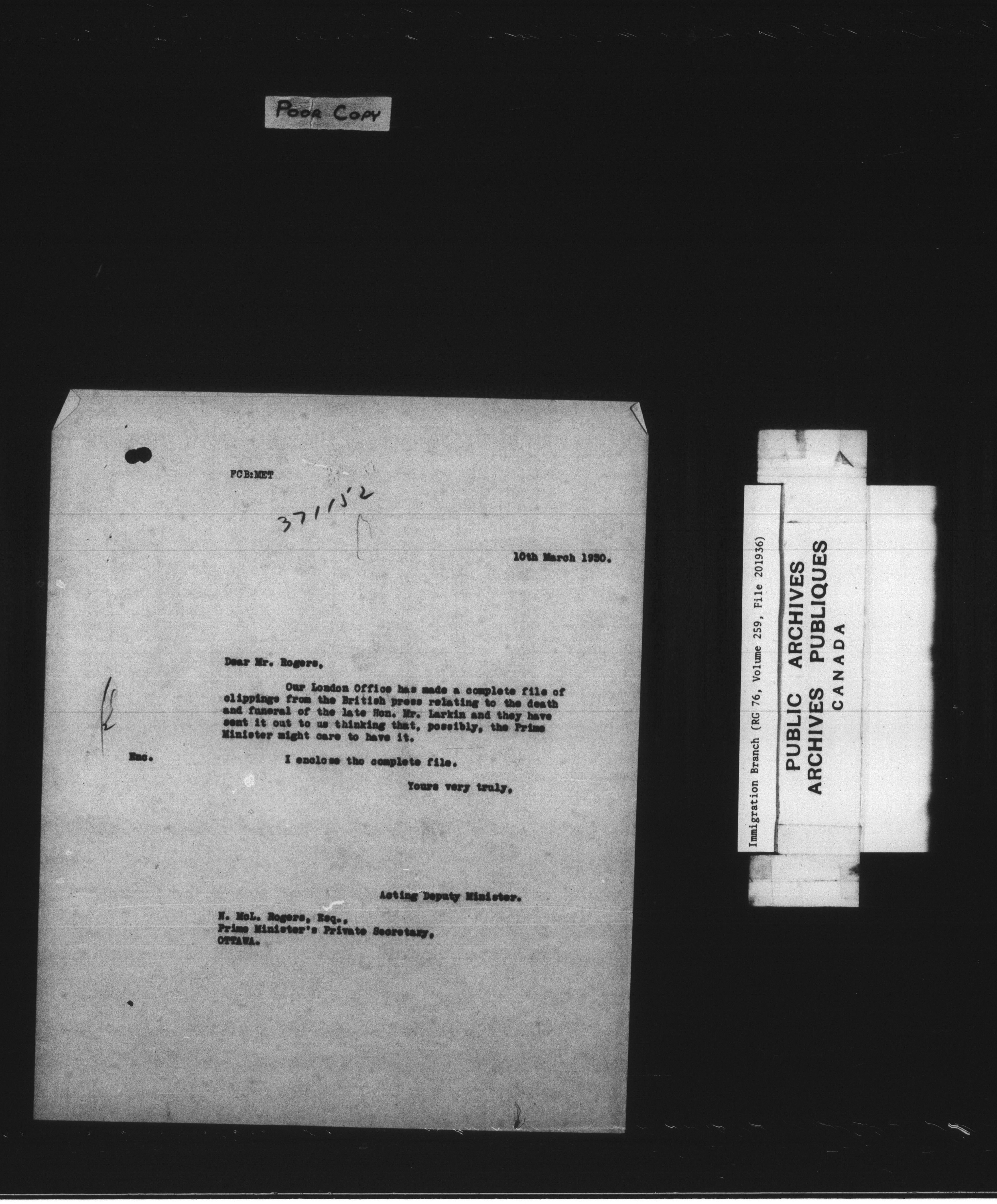 Subject, policy and case files in the First Central Registry series of the Immigration Program, 1892-1950 - 7807