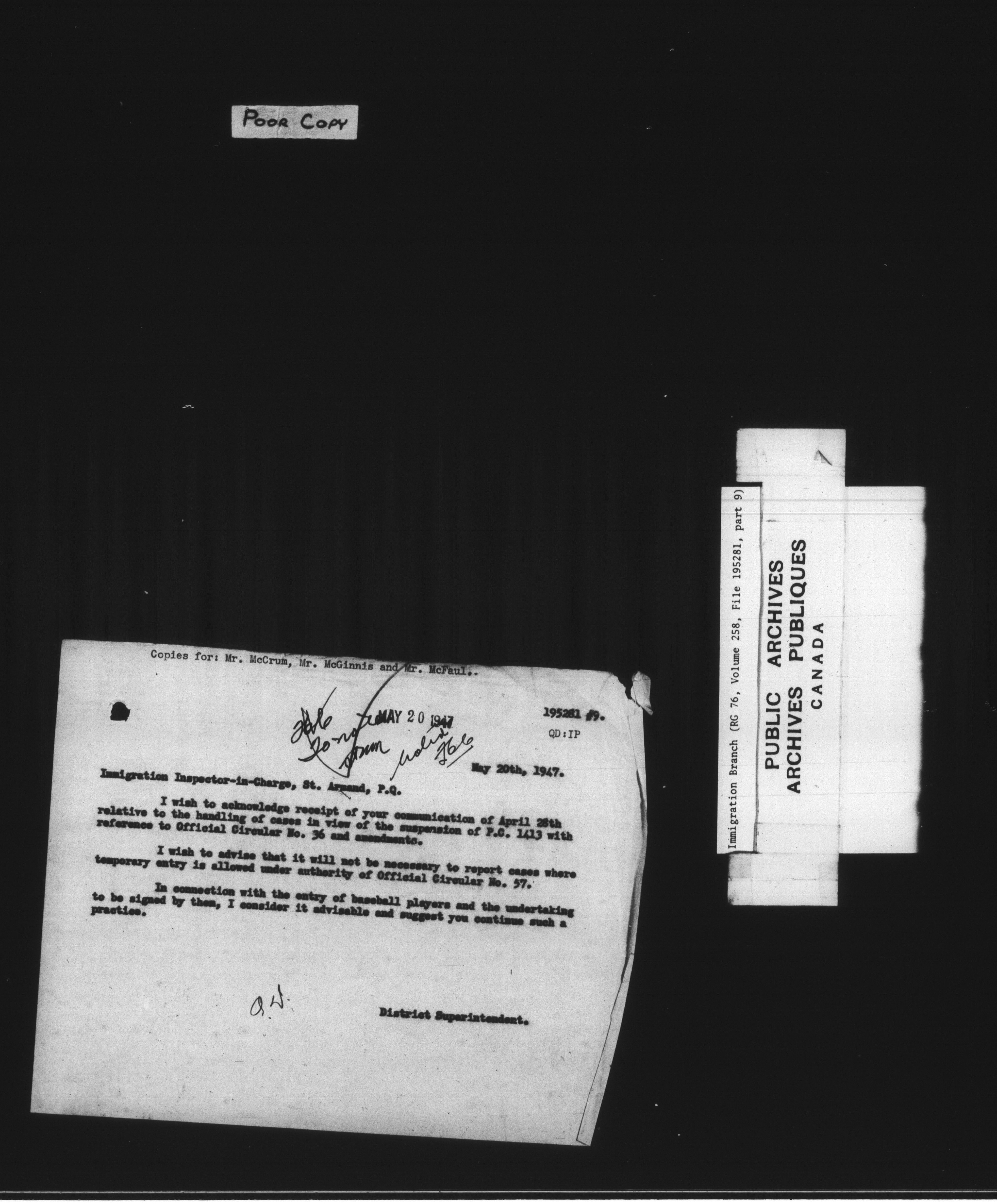Subject, policy and case files in the First Central Registry series of the Immigration Program, 1892-1950 - 7807