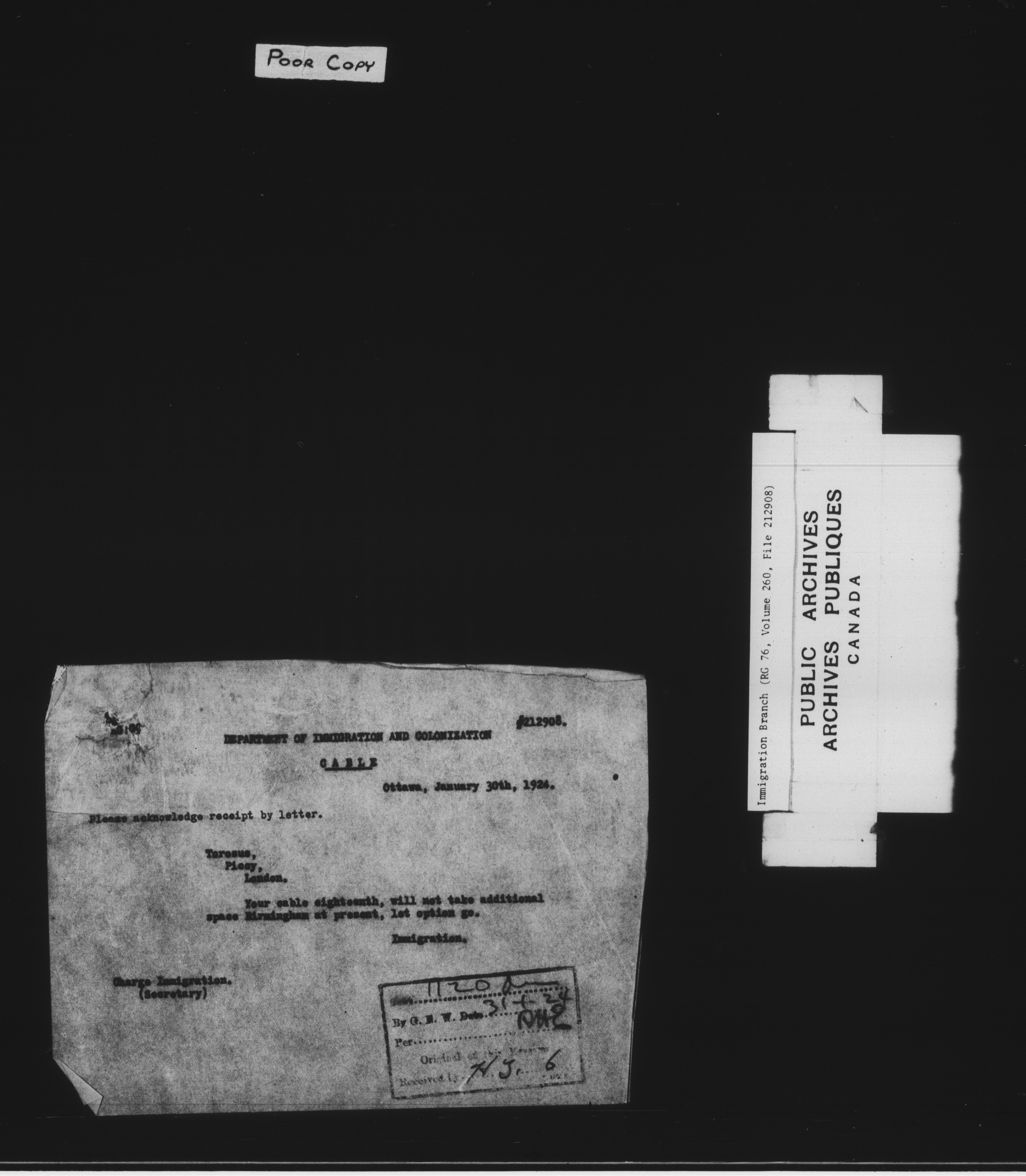 Subject, policy and case files in the First Central Registry series of the Immigration Program, 1892-1950 - 7808