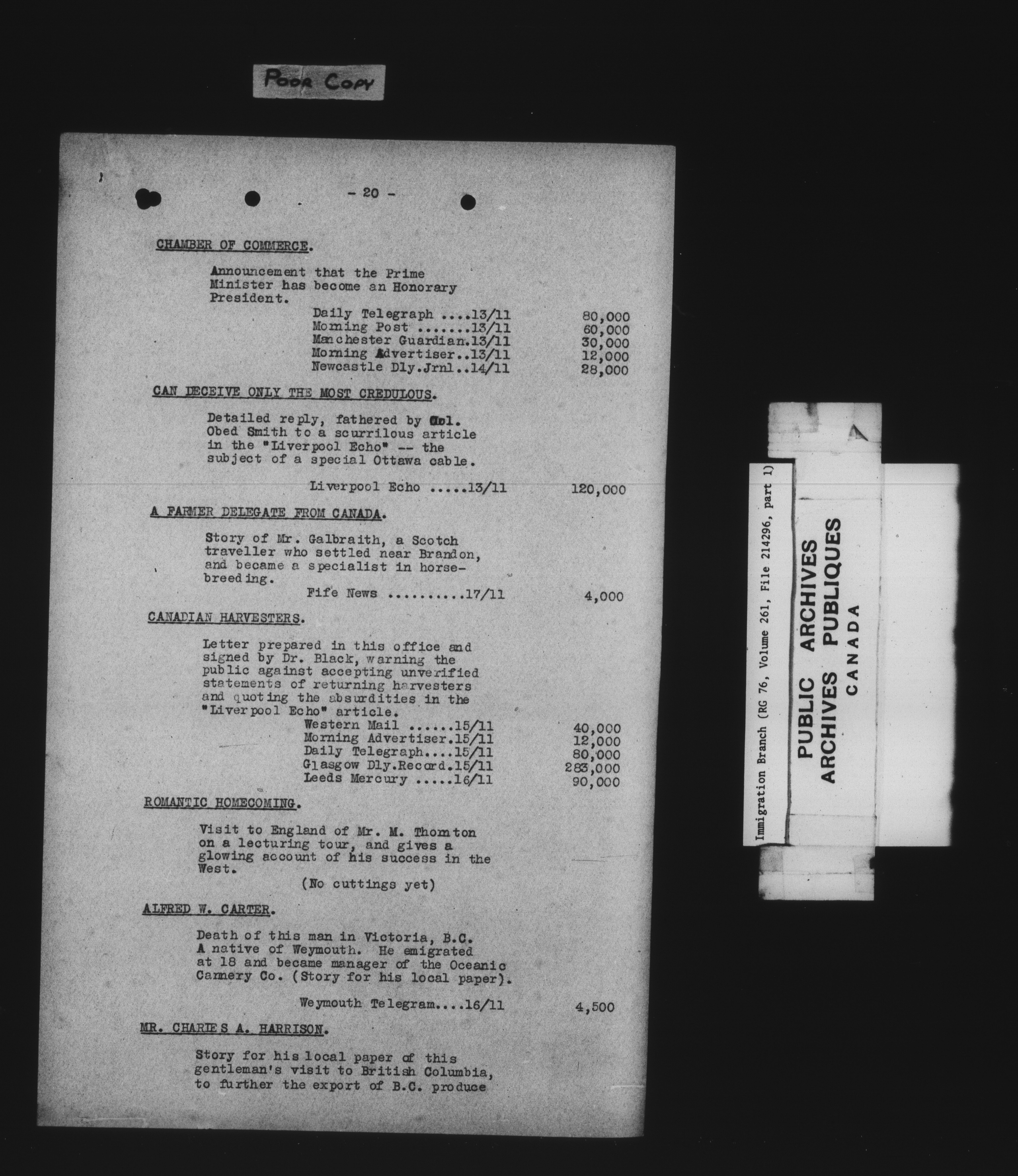 Subject, policy and case files in the First Central Registry series of the Immigration Program, 1892-1950 - 7809