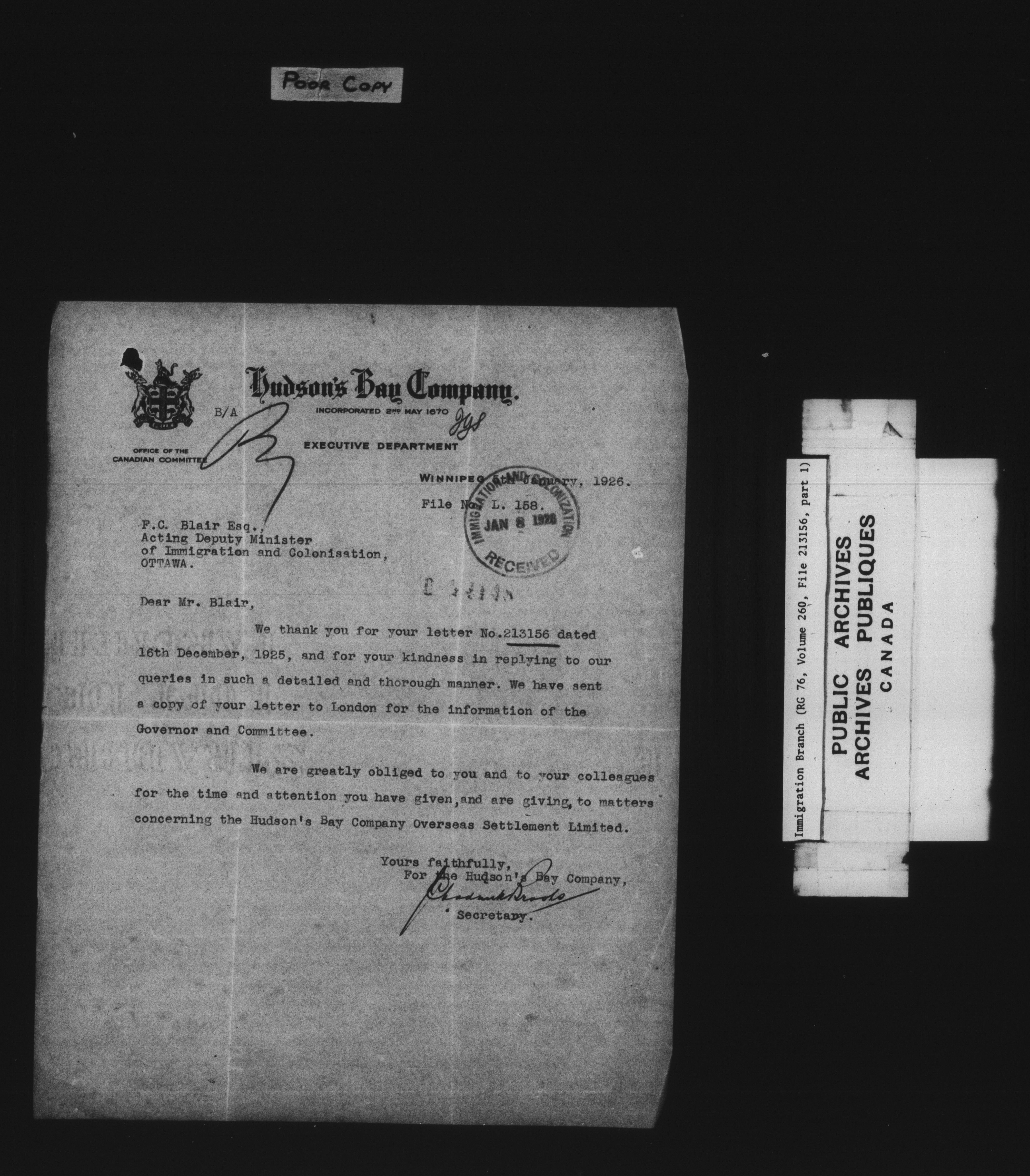 Subject, policy and case files in the First Central Registry series of the Immigration Program, 1892-1950 - 7809