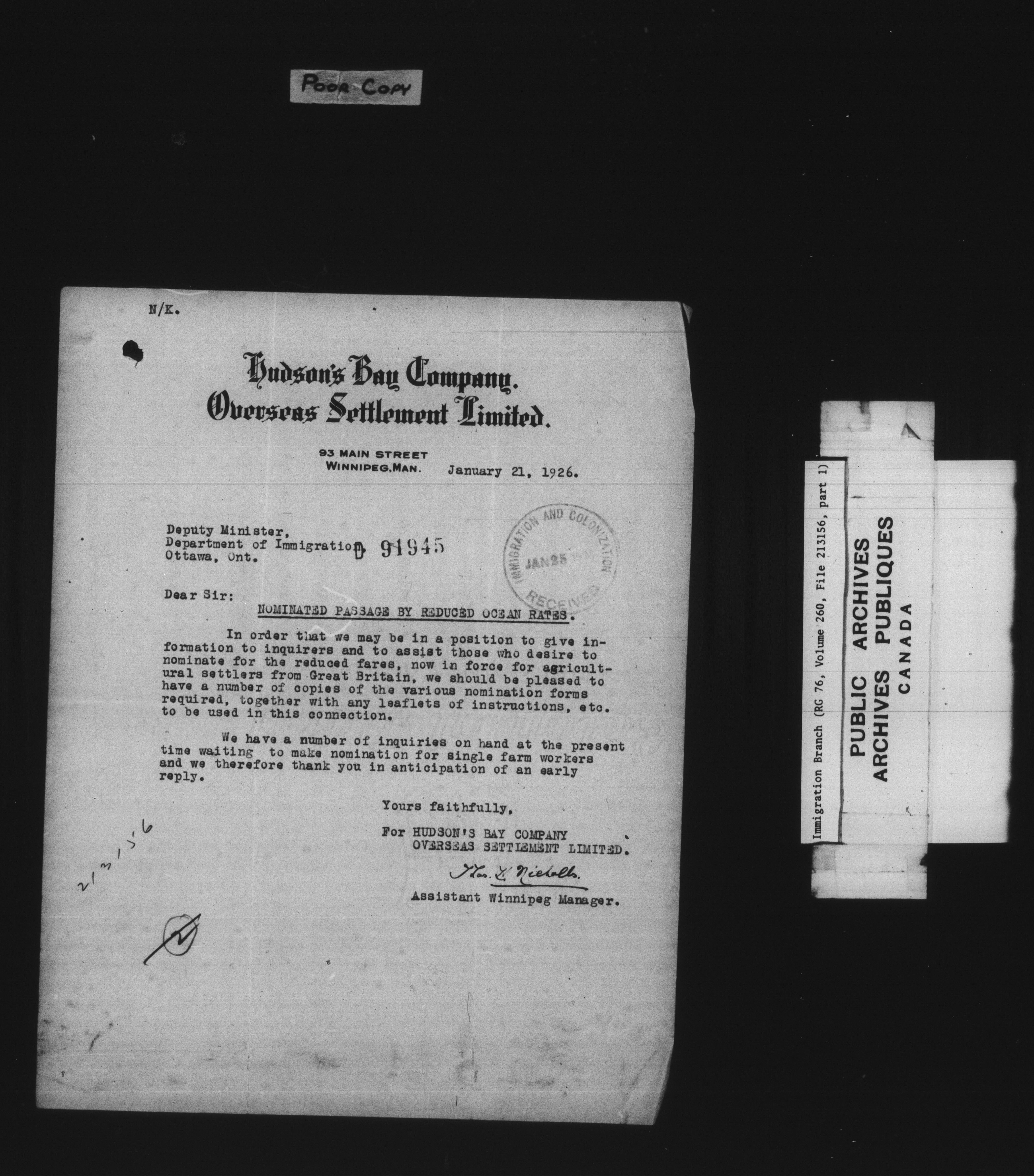 Subject, policy and case files in the First Central Registry series of the Immigration Program, 1892-1950 - 7809