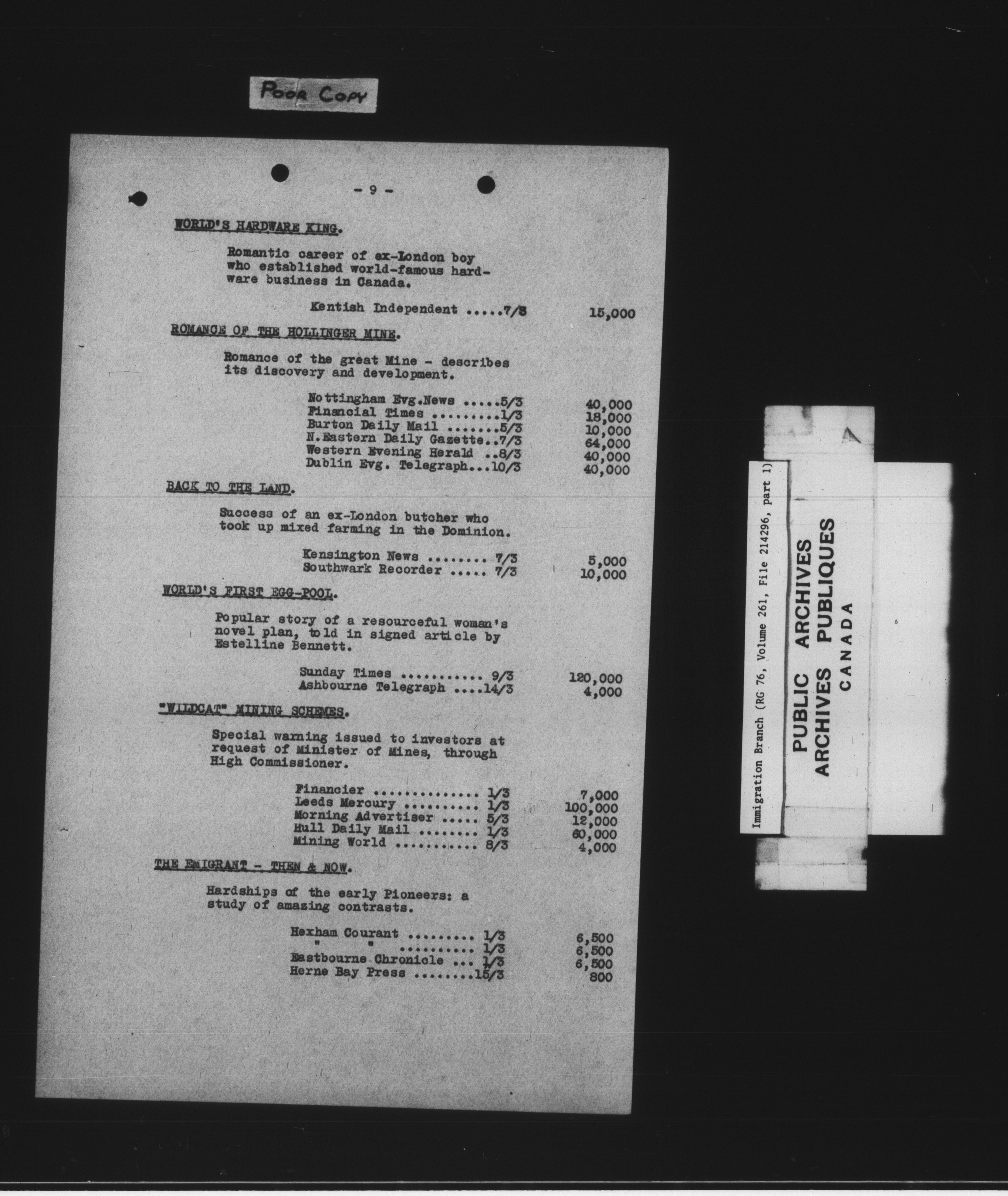 Immigration Program : Headquarters central registry files : C-7810