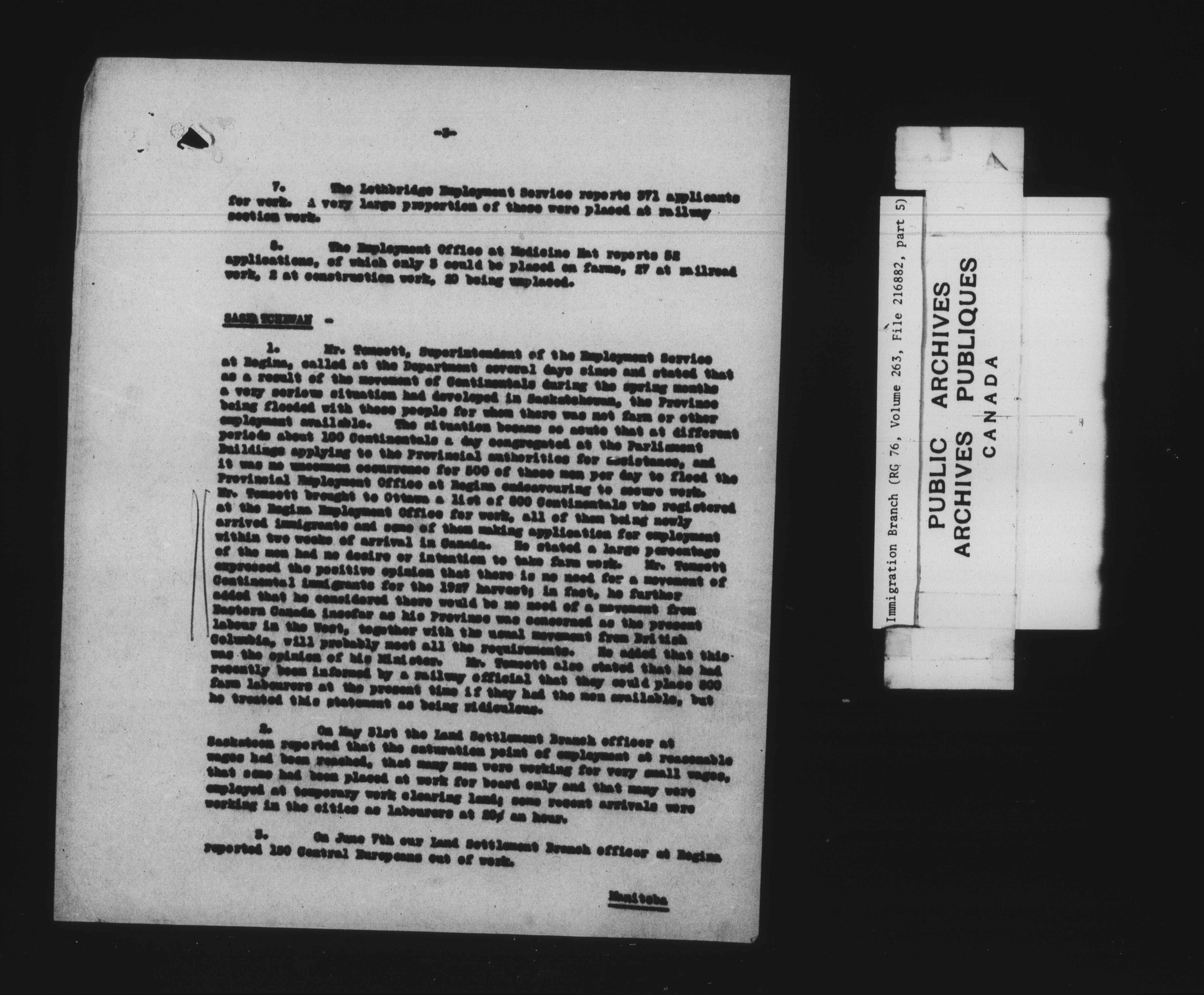 Subject, policy and case files in the First Central Registry series of the Immigration Program, 1892-1950 - 7811