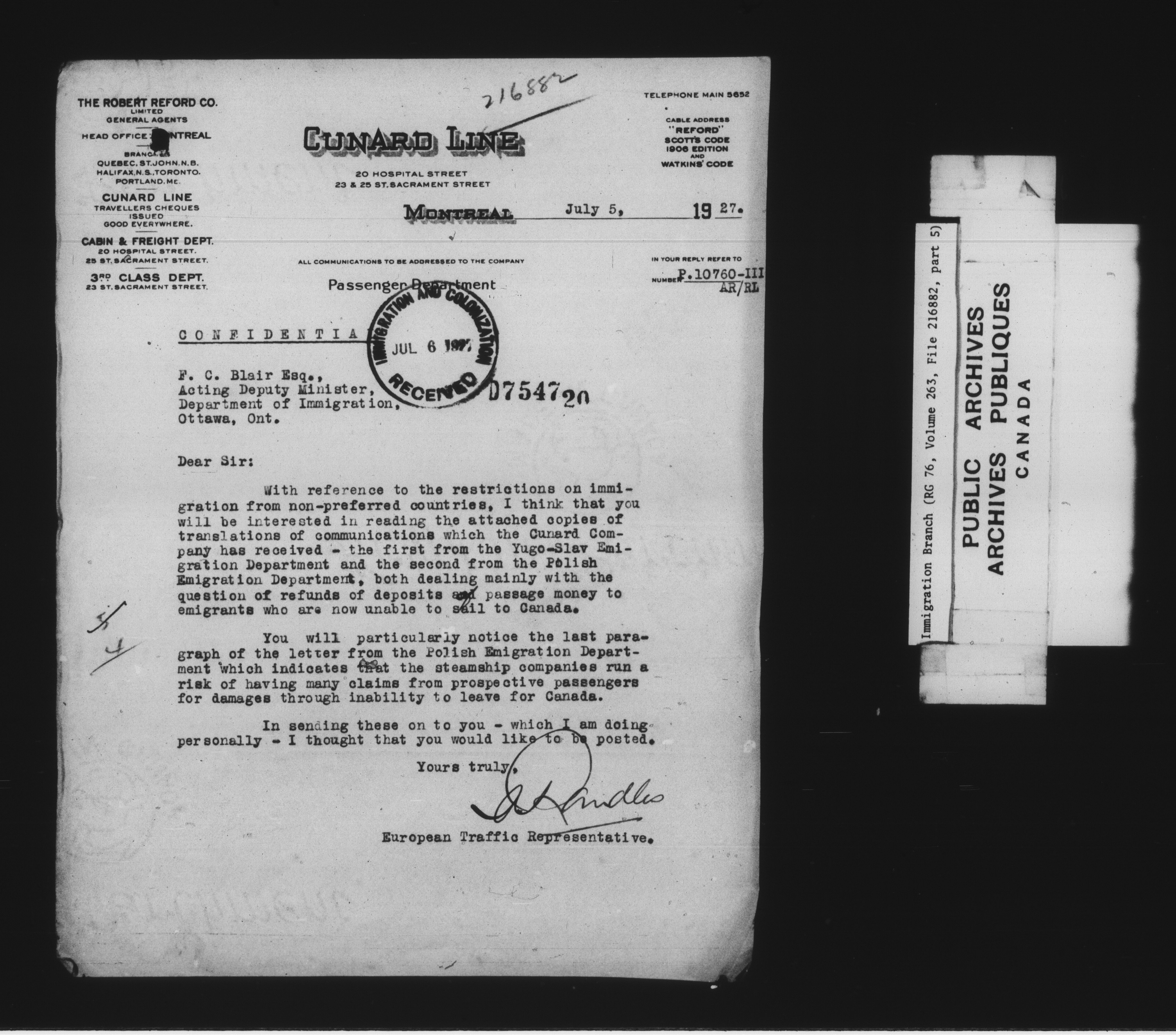 Subject, policy and case files in the First Central Registry series of the Immigration Program, 1892-1950 - 7811