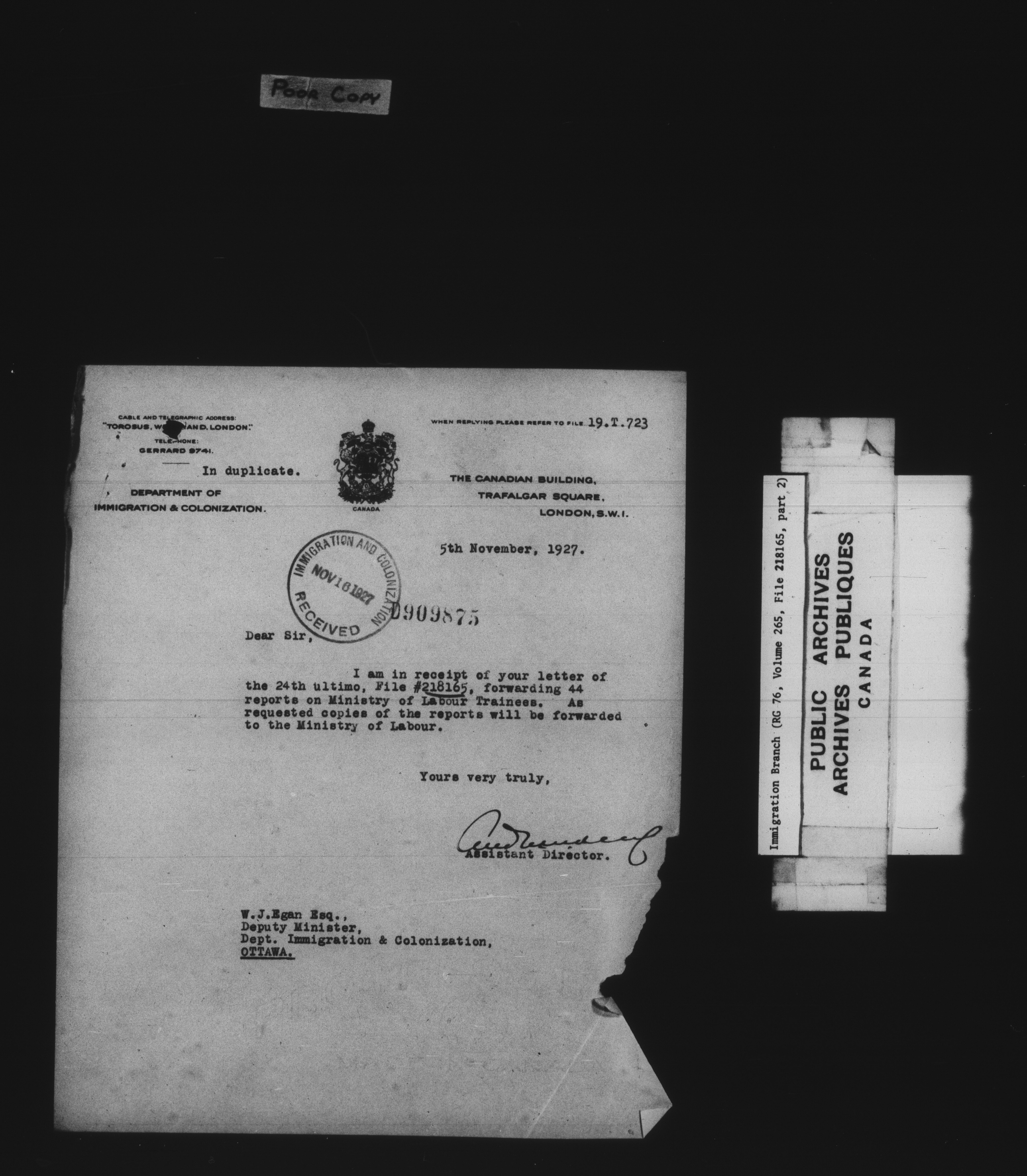 Subject, policy and case files in the First Central Registry series of the Immigration Program, 1892-1950 - 7814