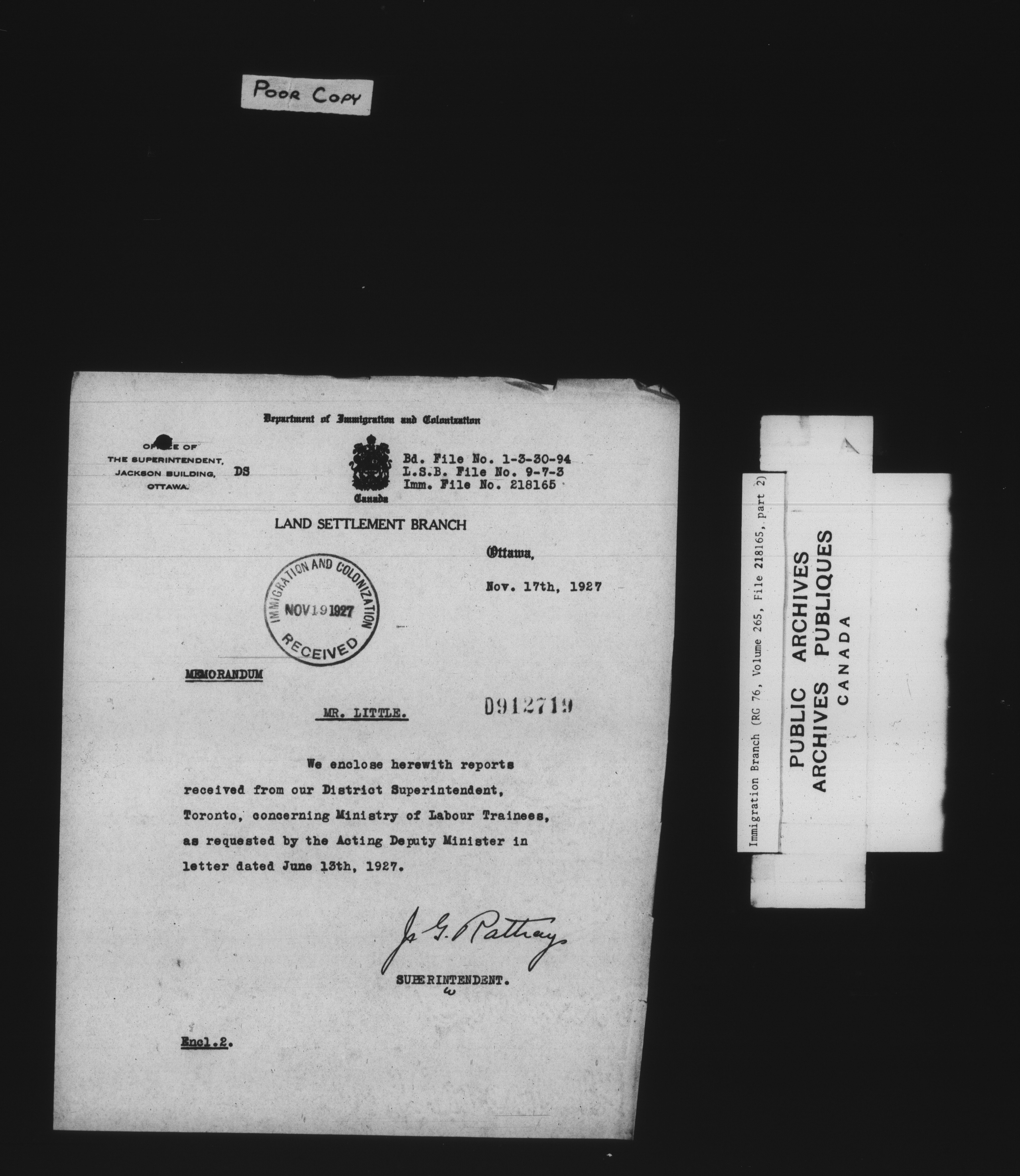 Subject, policy and case files in the First Central Registry series of the Immigration Program, 1892-1950 - 7814