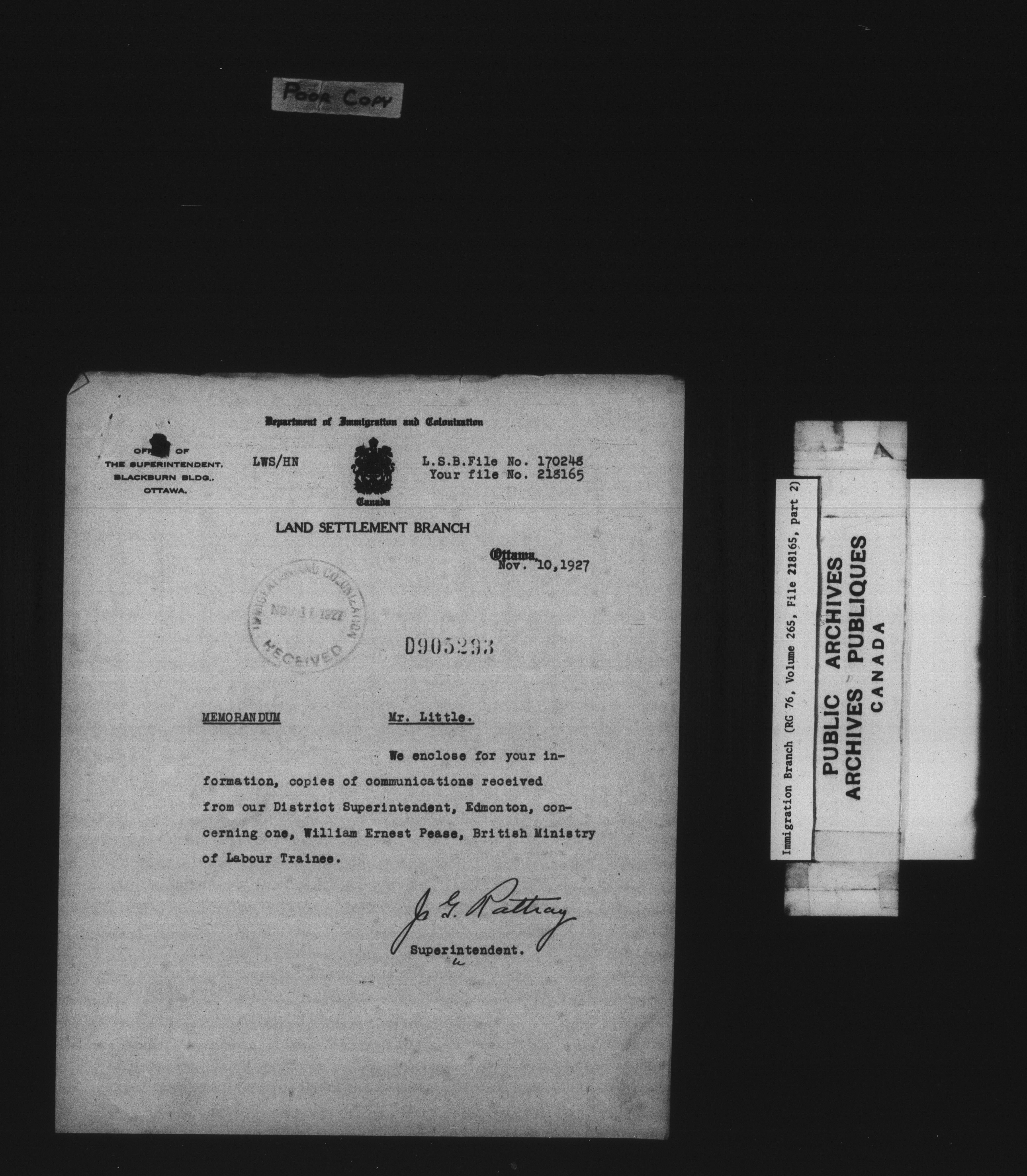 Subject, policy and case files in the First Central Registry series of the Immigration Program, 1892-1950 - 7814