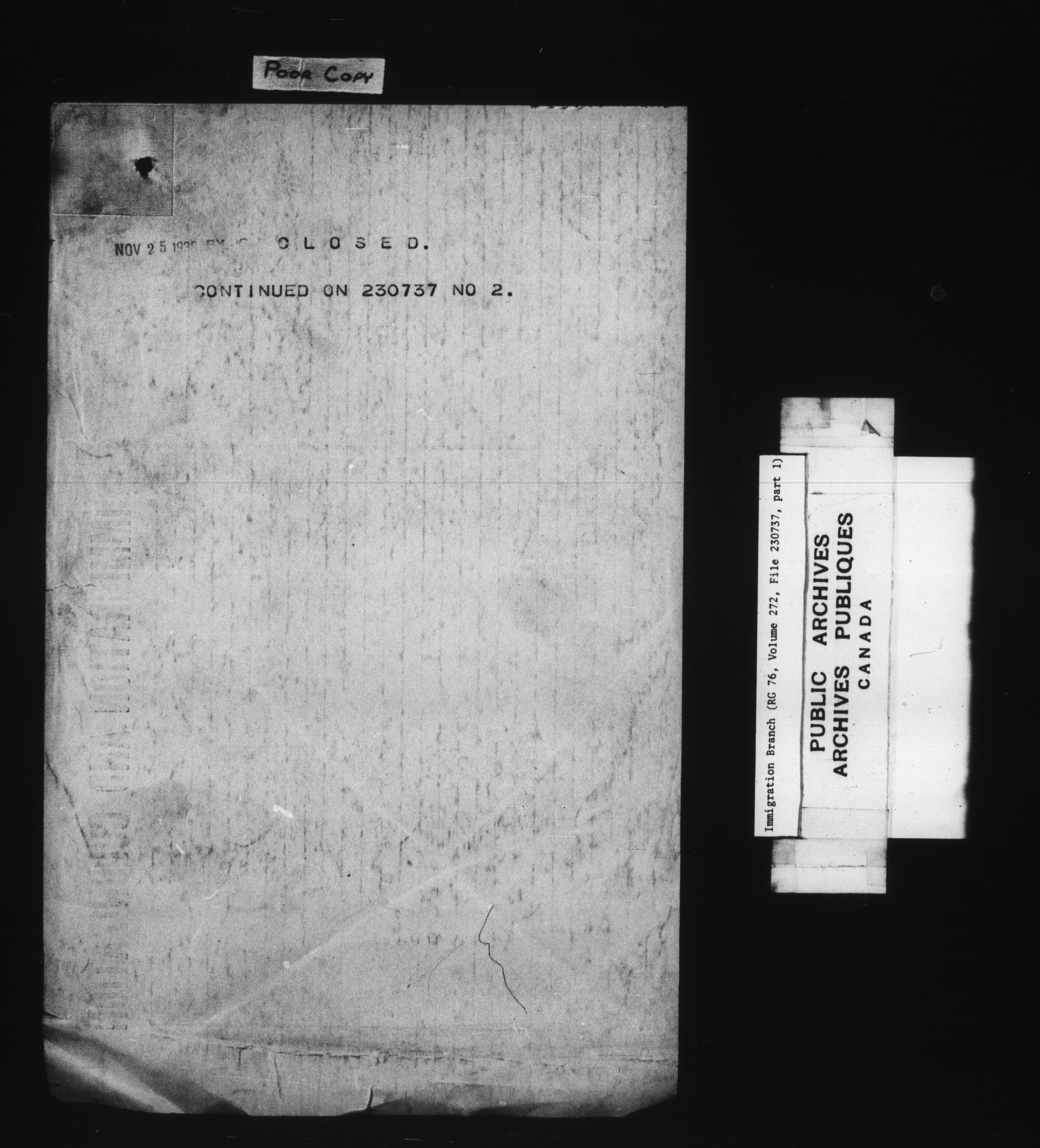 Subject, policy and case files in the First Central Registry series of the Immigration Program, 1892-1950 - 7820