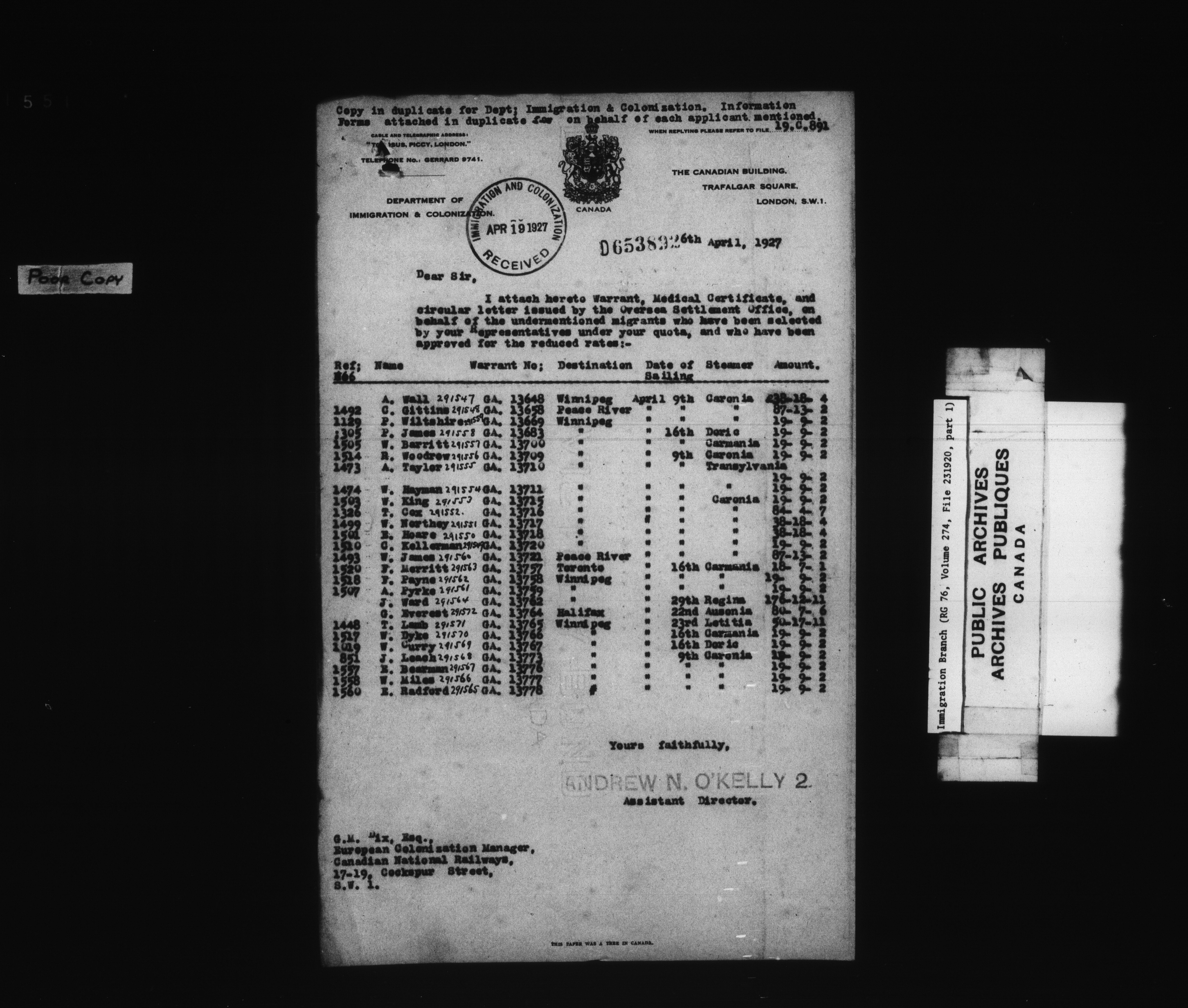 Subject, policy and case files in the First Central Registry series of the Immigration Program, 1892-1950 - 7821