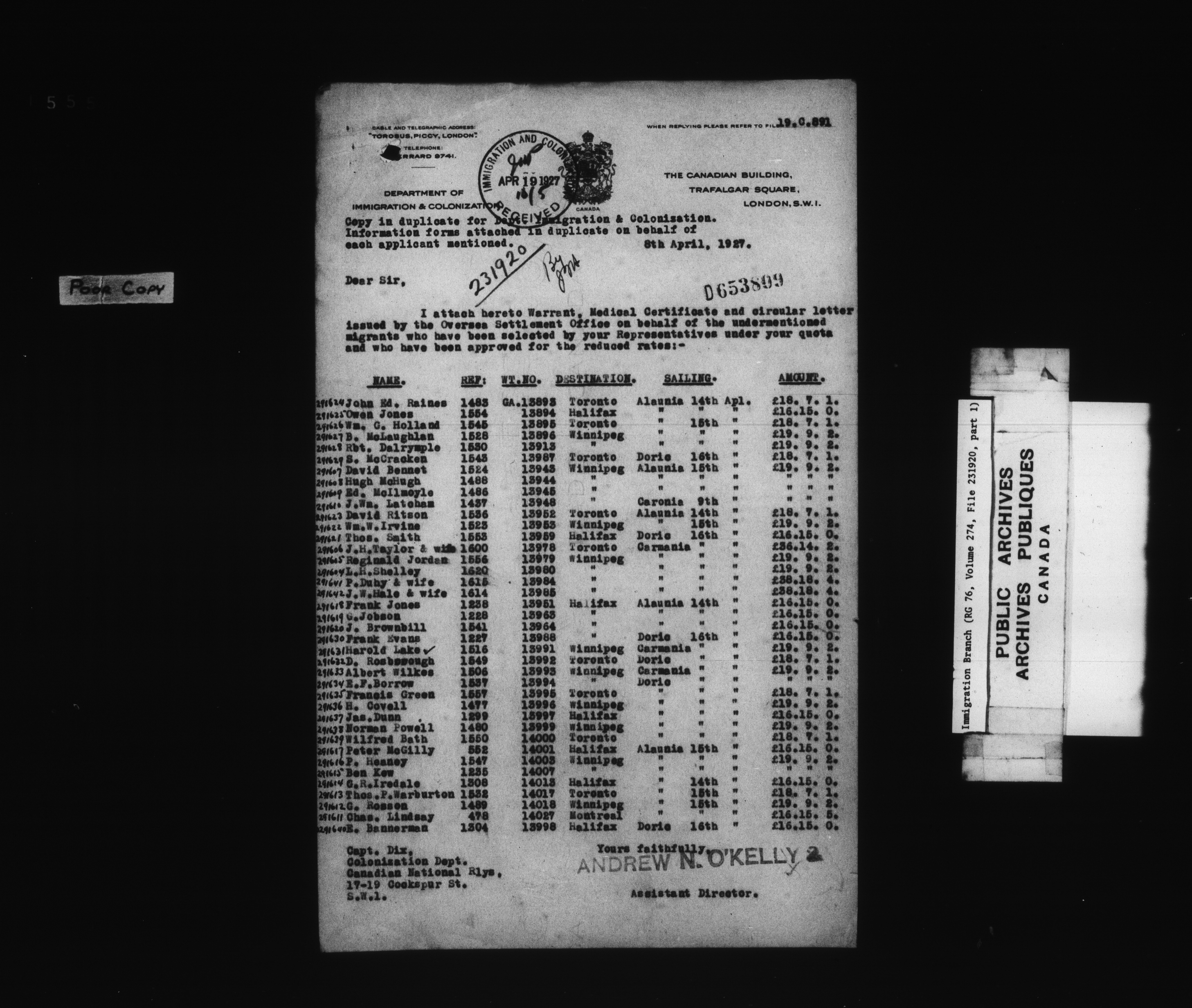 Subject, policy and case files in the First Central Registry series of the Immigration Program, 1892-1950 - 7821