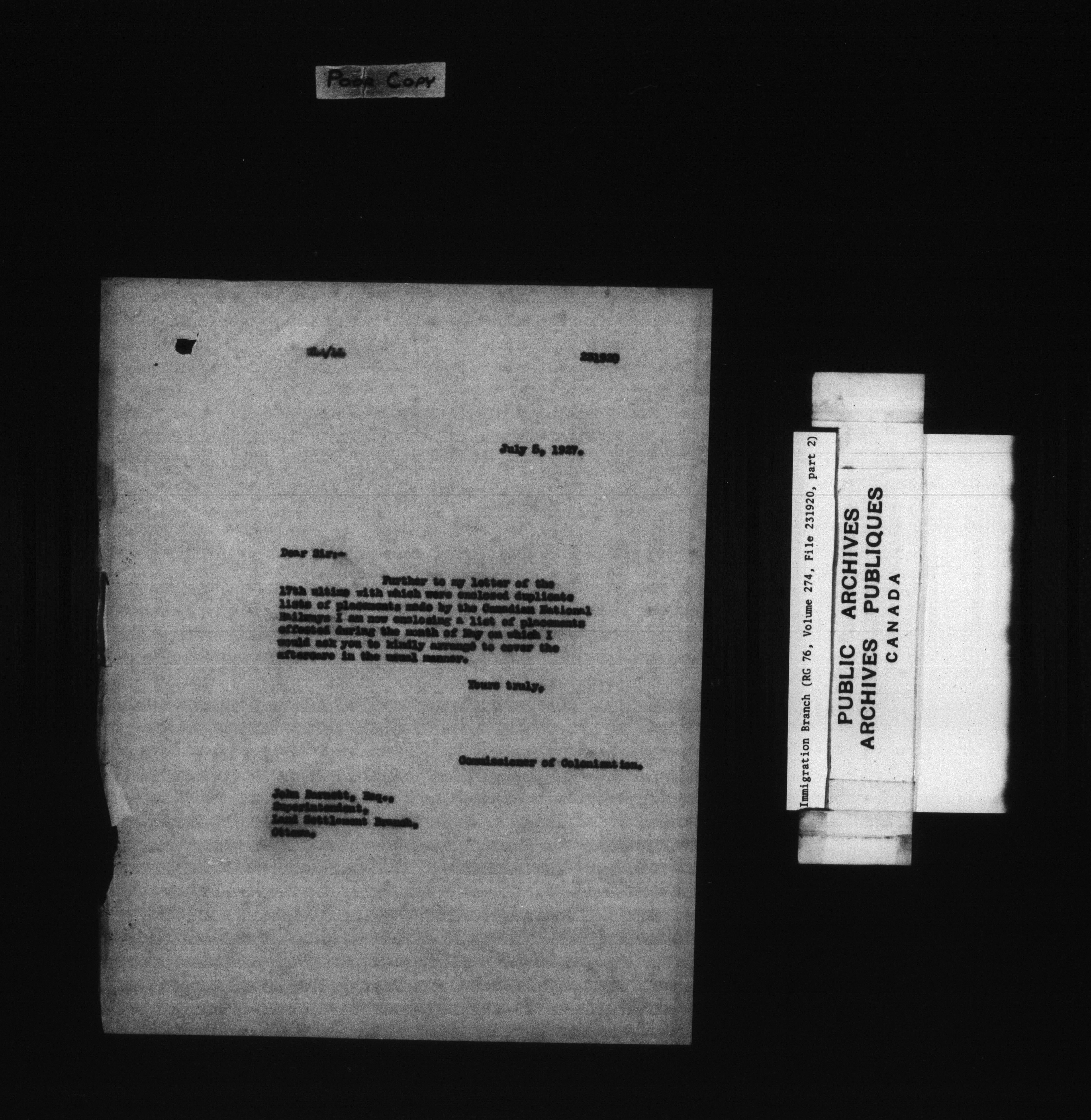 Subject, policy and case files in the First Central Registry series of the Immigration Program, 1892-1950 - 7822