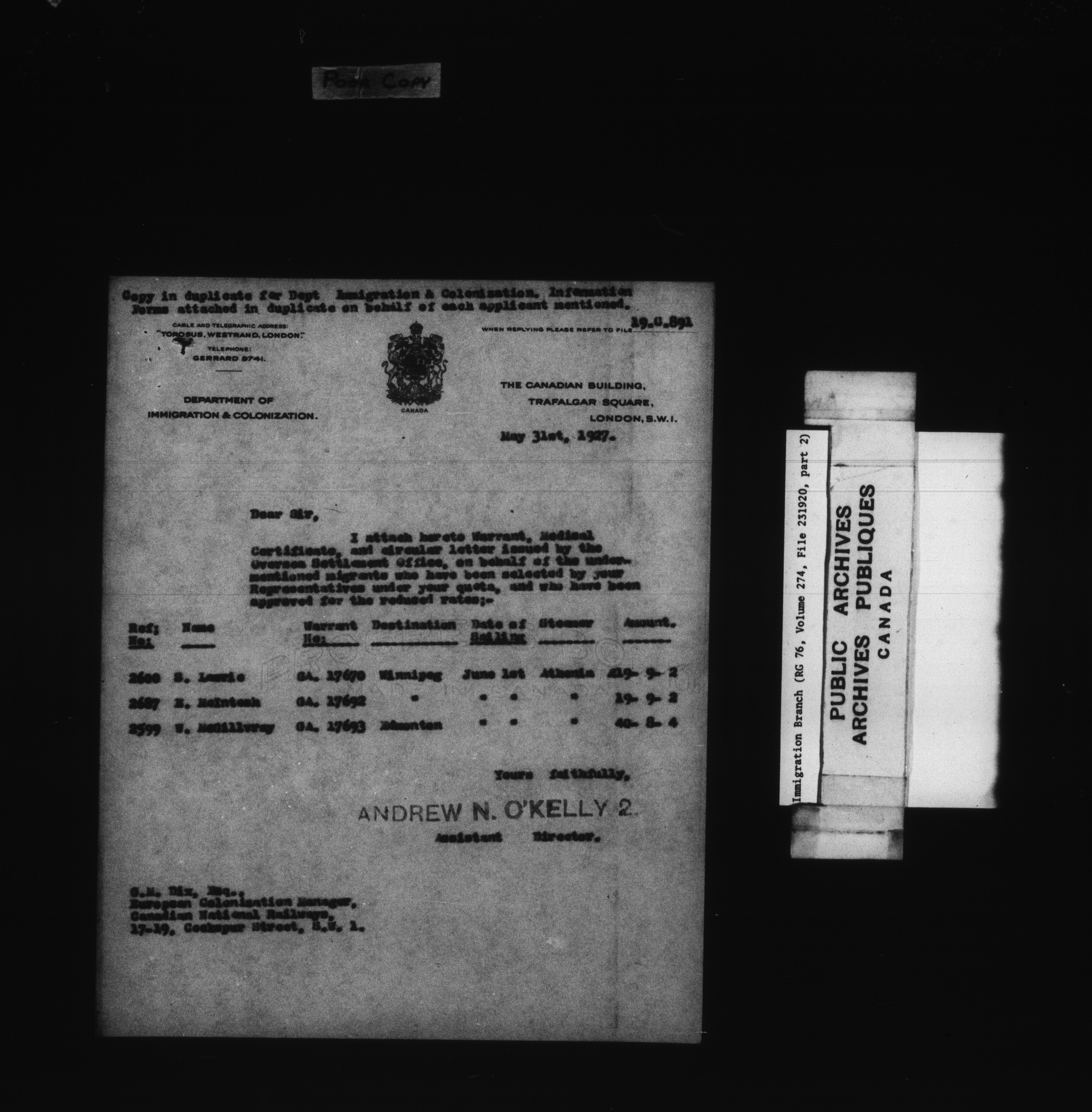 Subject, policy and case files in the First Central Registry series of the Immigration Program, 1892-1950 - 7822