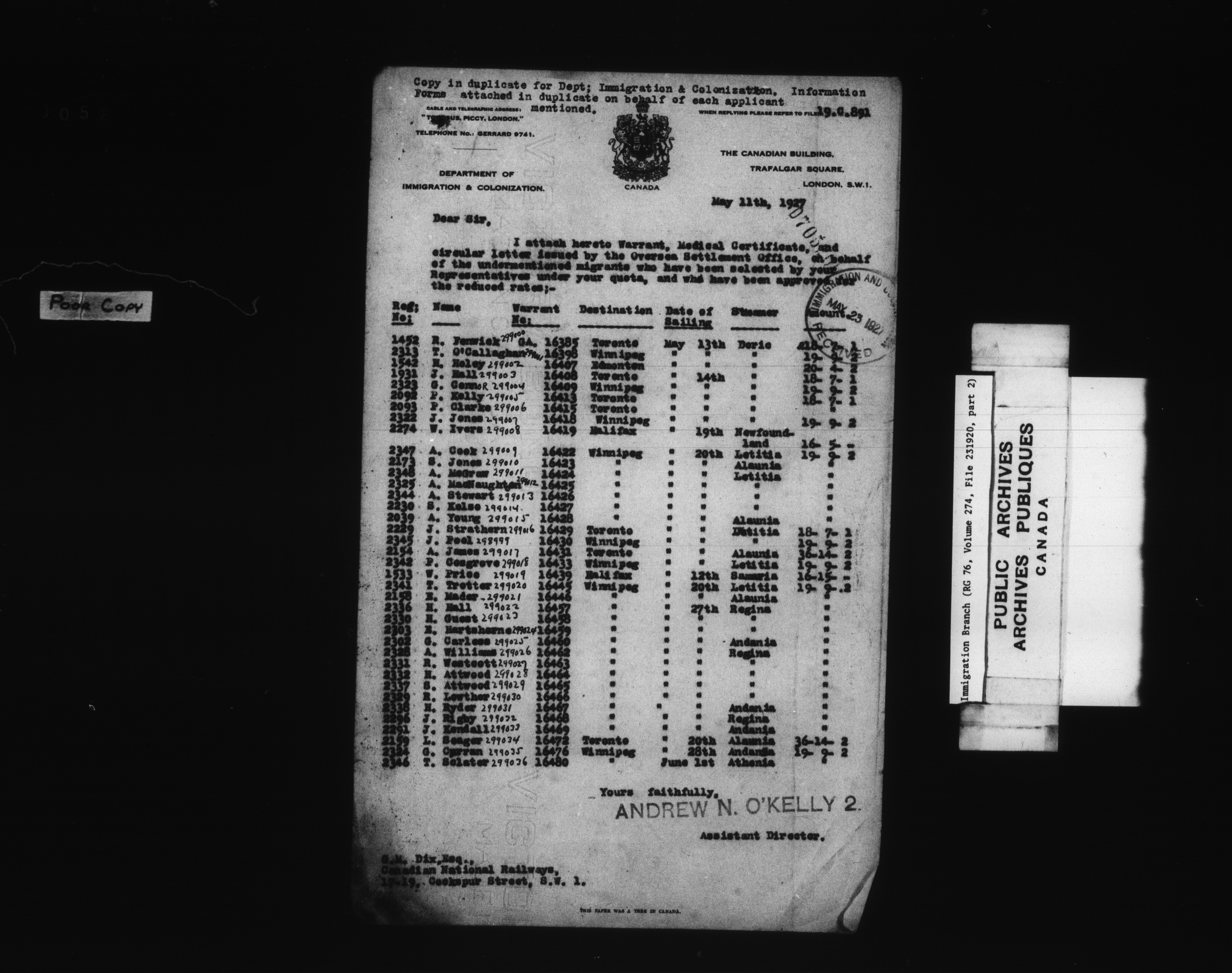 Subject, policy and case files in the First Central Registry series of the Immigration Program, 1892-1950 - 7822