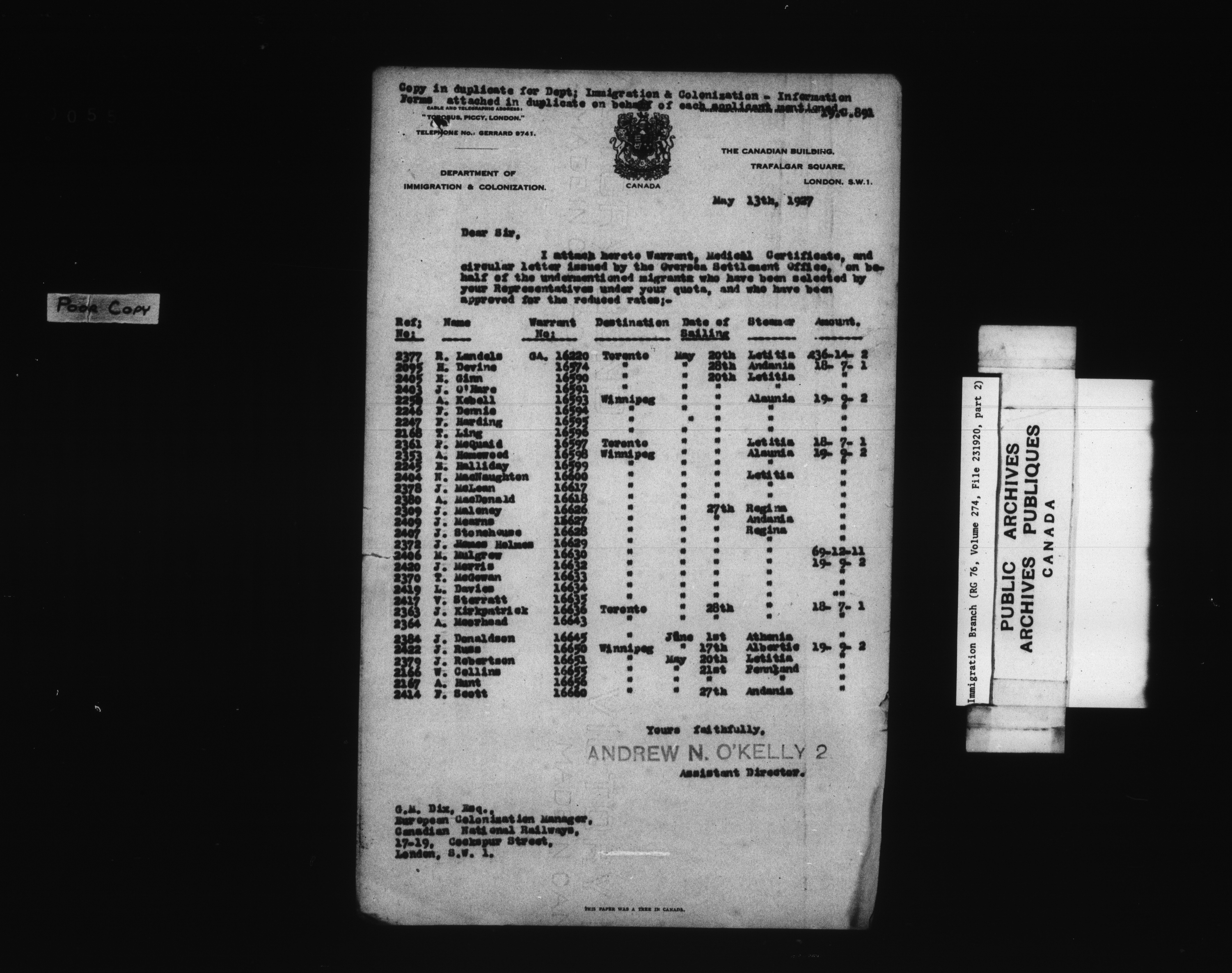 Subject, policy and case files in the First Central Registry series of the Immigration Program, 1892-1950 - 7822