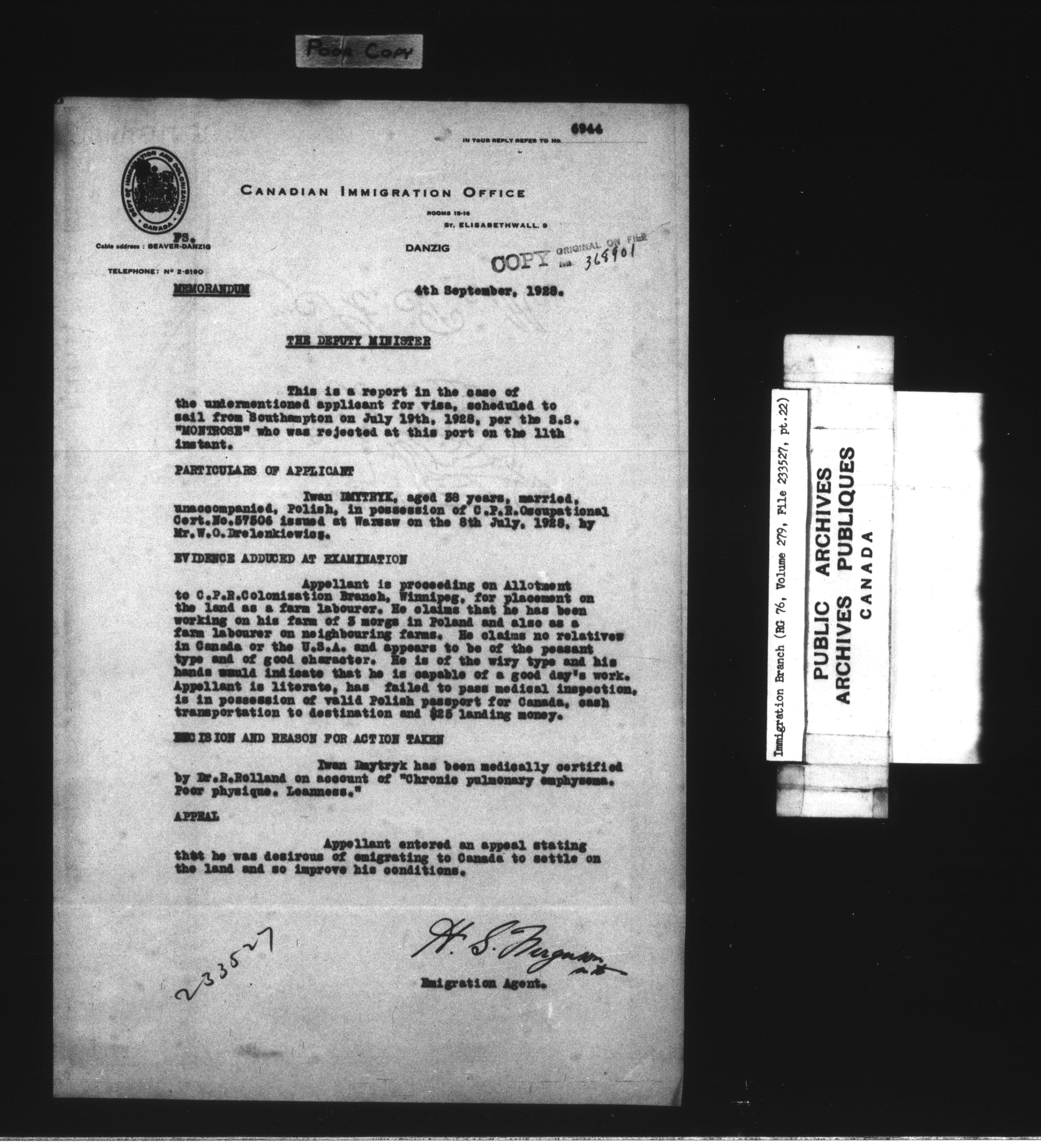 Subject, policy and case files in the First Central Registry series of the Immigration Program, 1892-1950 - 7828