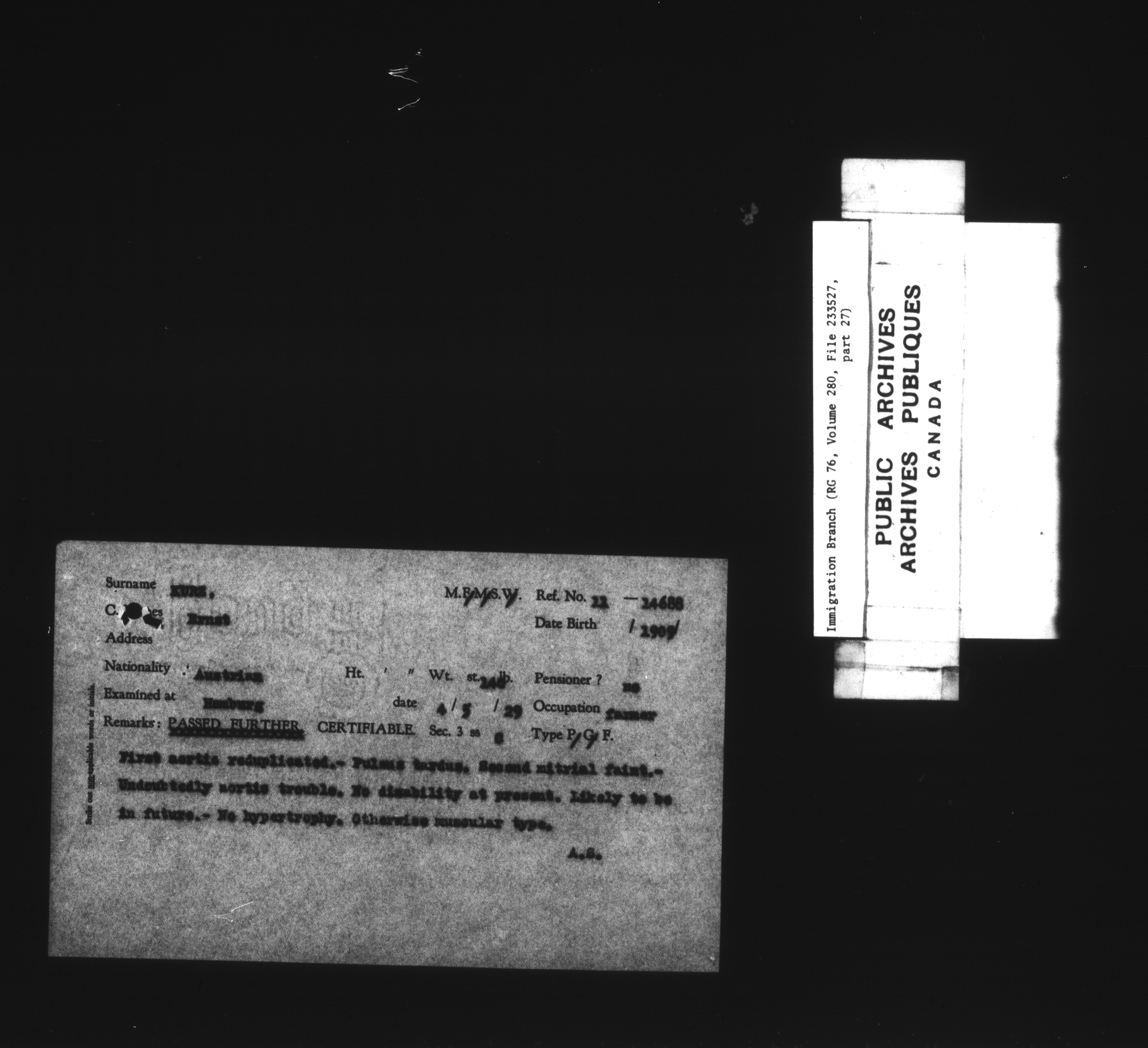 Subject, policy and case files in the First Central Registry series of the Immigration Program, 1892-1950 - 7829