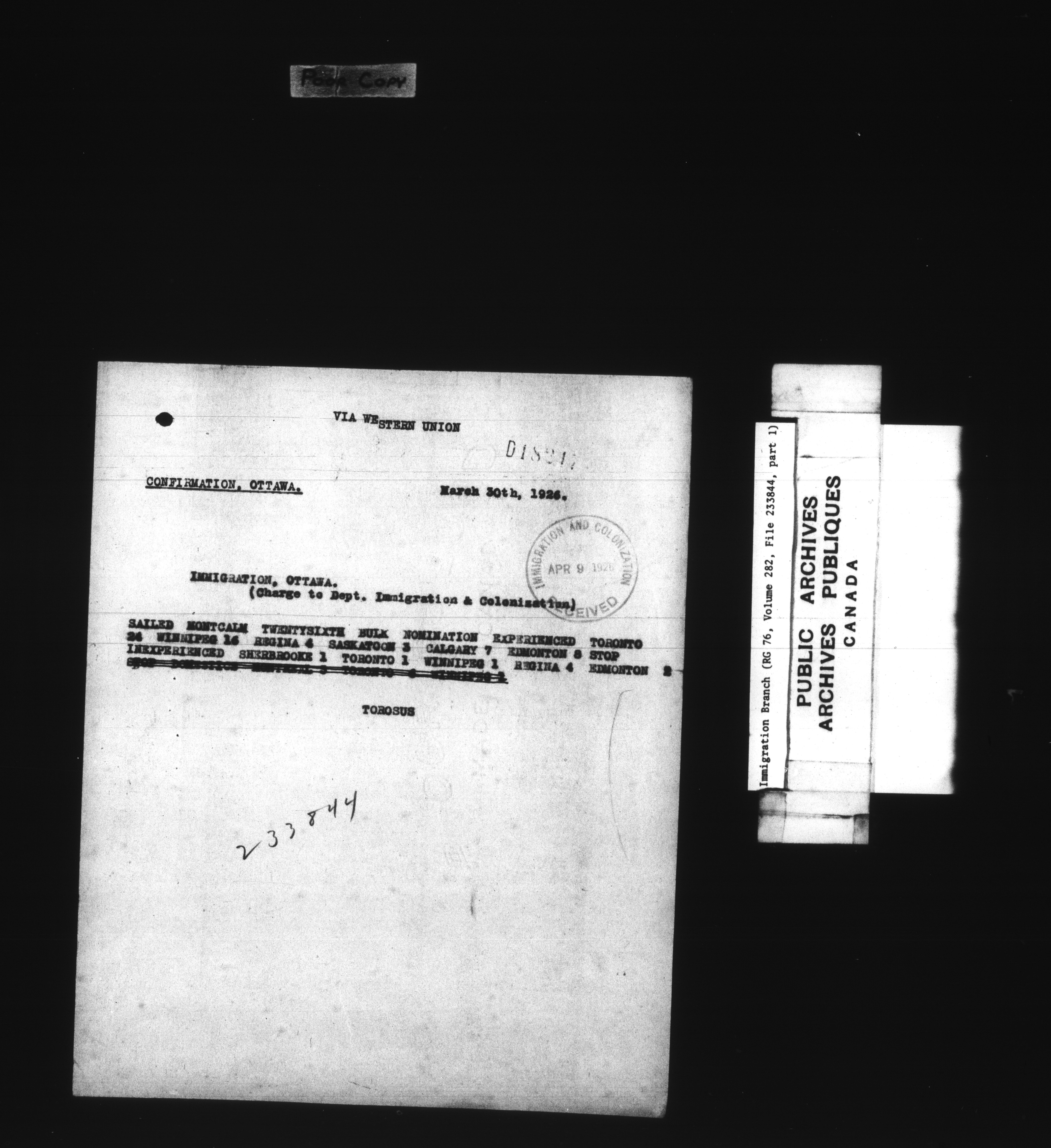 Subject, policy and case files in the First Central Registry series of the Immigration Program, 1892-1950 - 7831