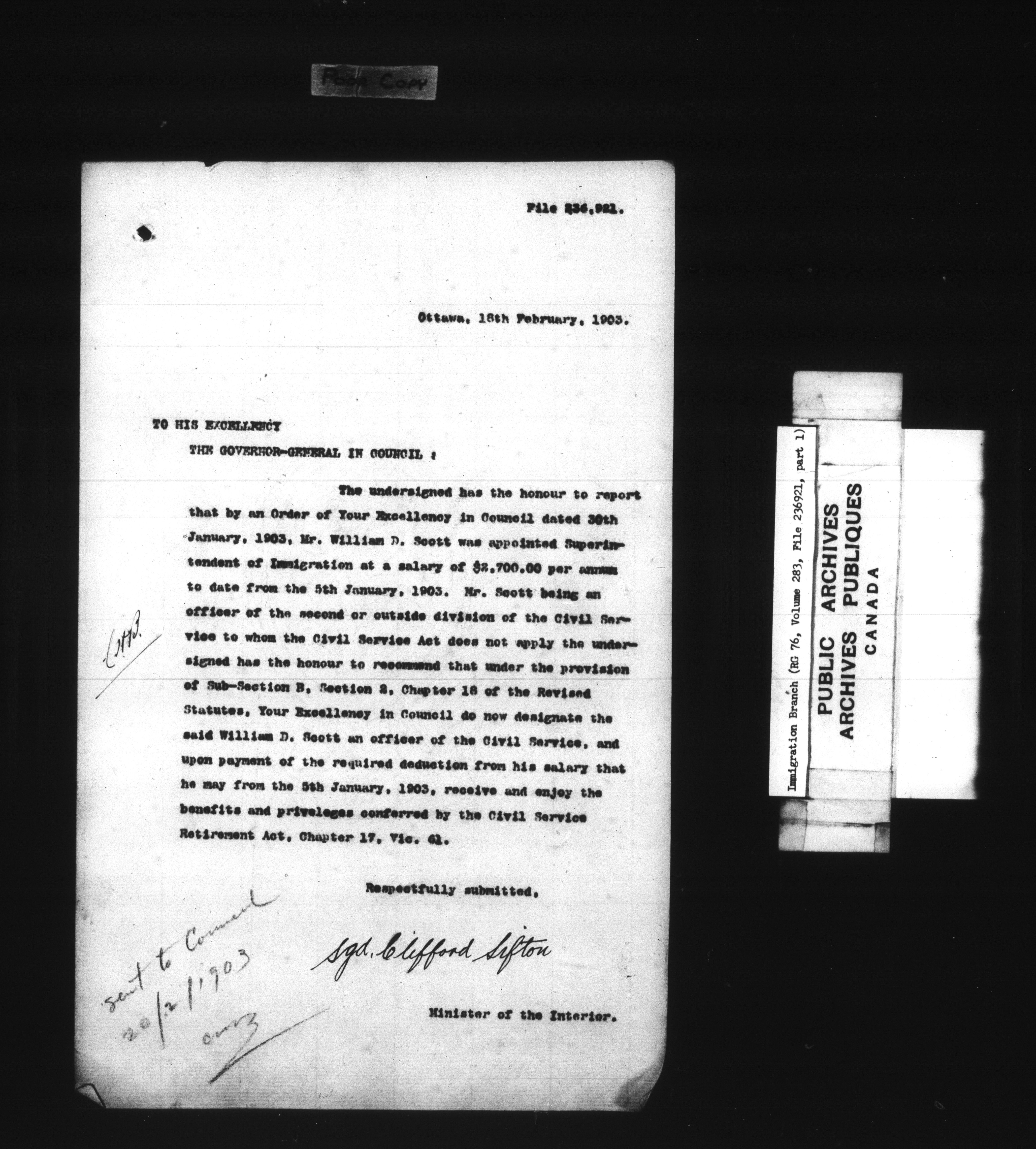 Subject, policy and case files in the First Central Registry series of the Immigration Program, 1892-1950 - 7831